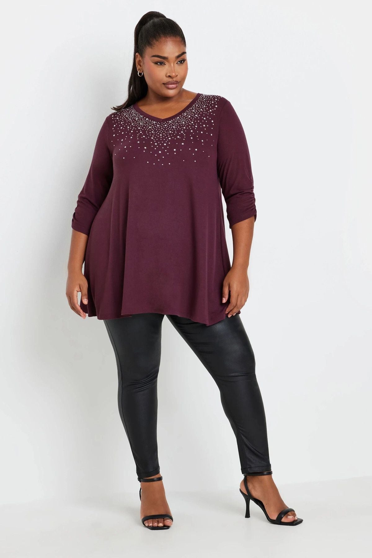 Büyük Beden V Yakası Taş İşlemeli Kolları Büzgülü Bluz 322227