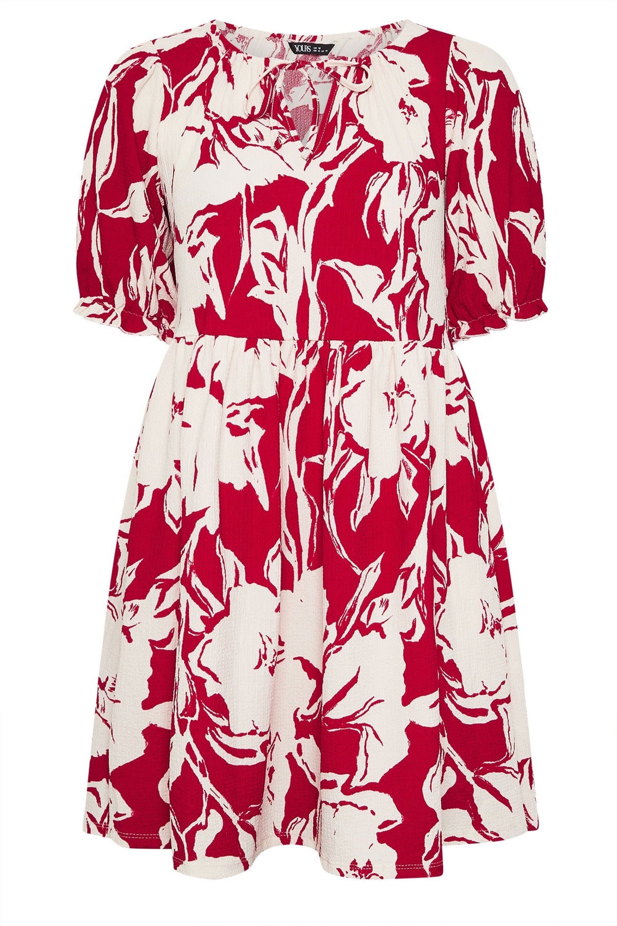 Büyük Beden Yakası Bağlamalı Çiçek Desenli Bürümcük Kumaş Diz Üstü Elbise 304113