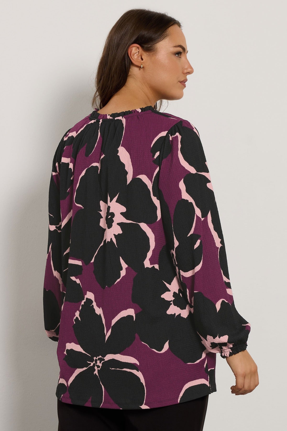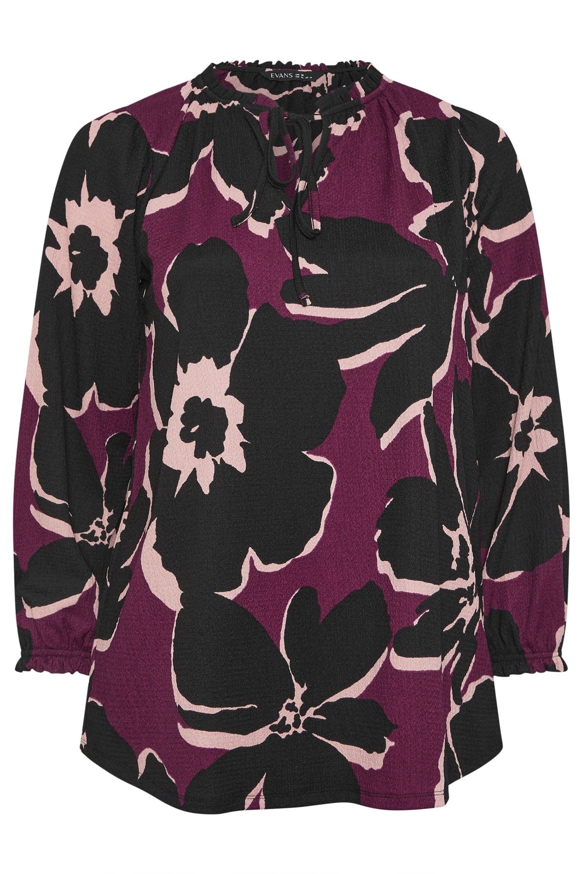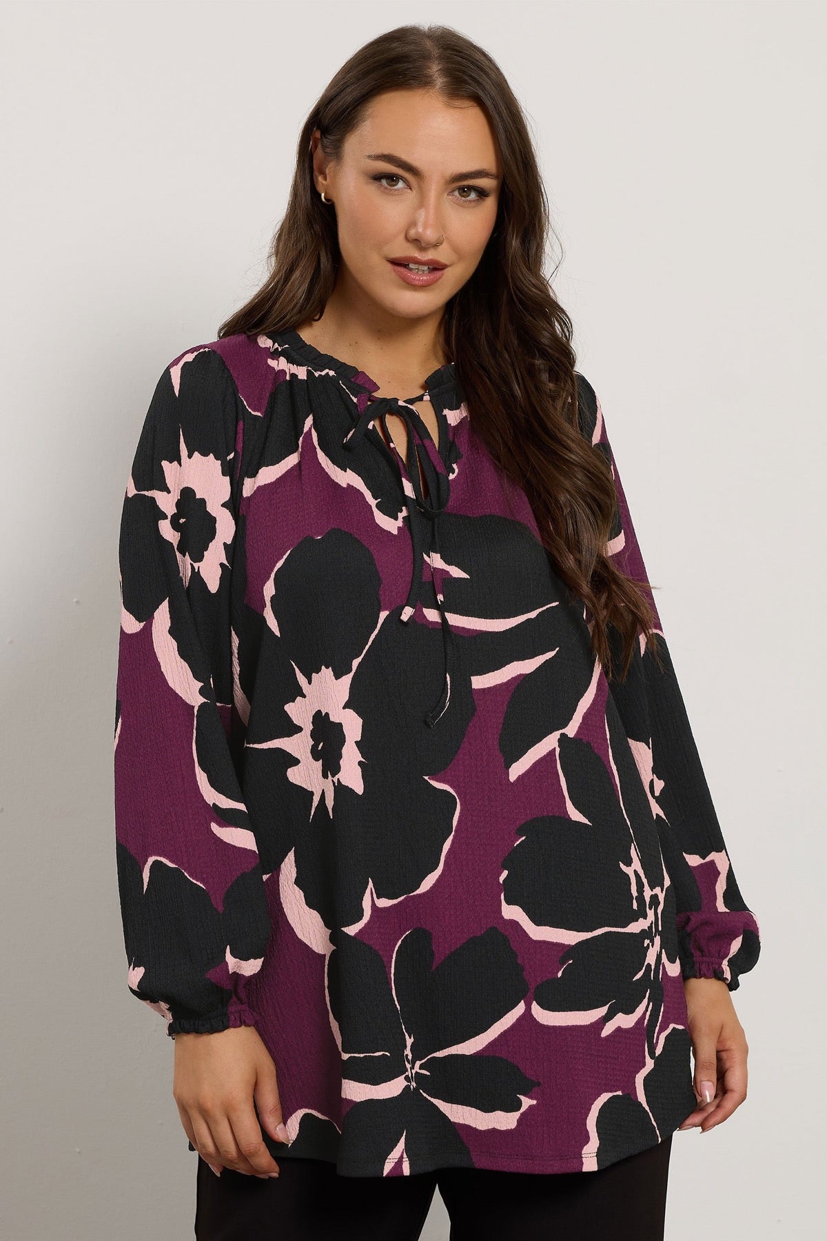 Büyük Beden Yakası Bağlamalı Uzun Kollu Çiçek Desenli Bluz 616410