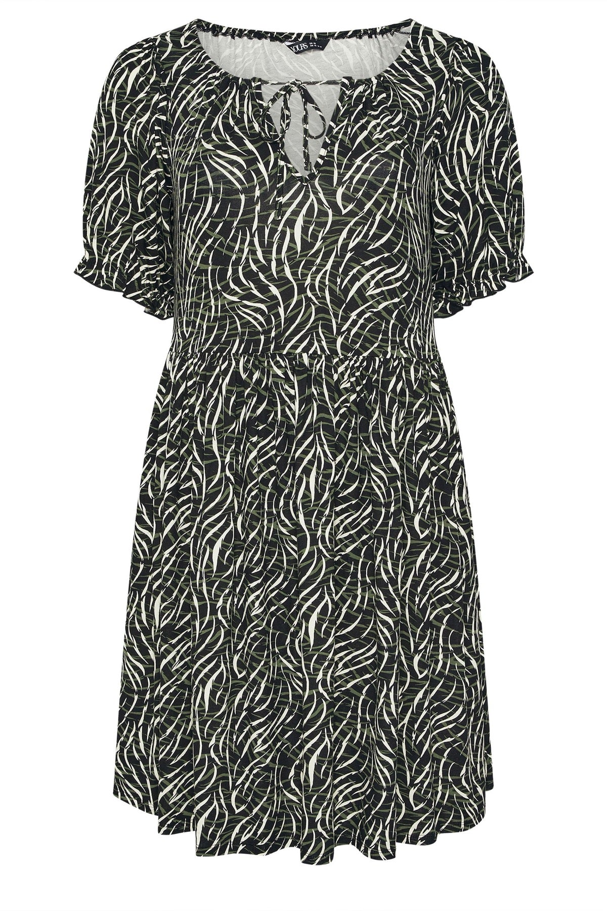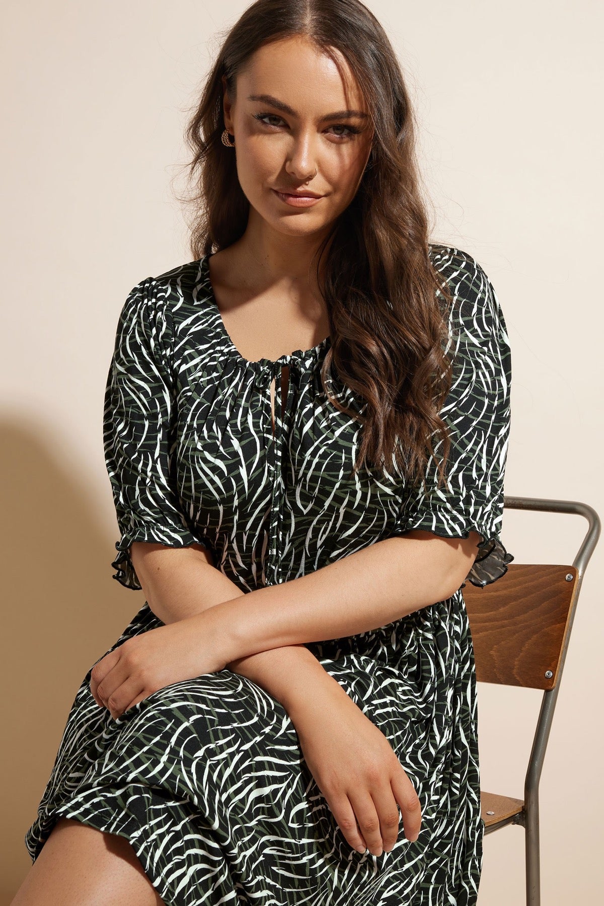 Büyük Beden Yakası Büzgülü Desenli Mini Elbise 304018