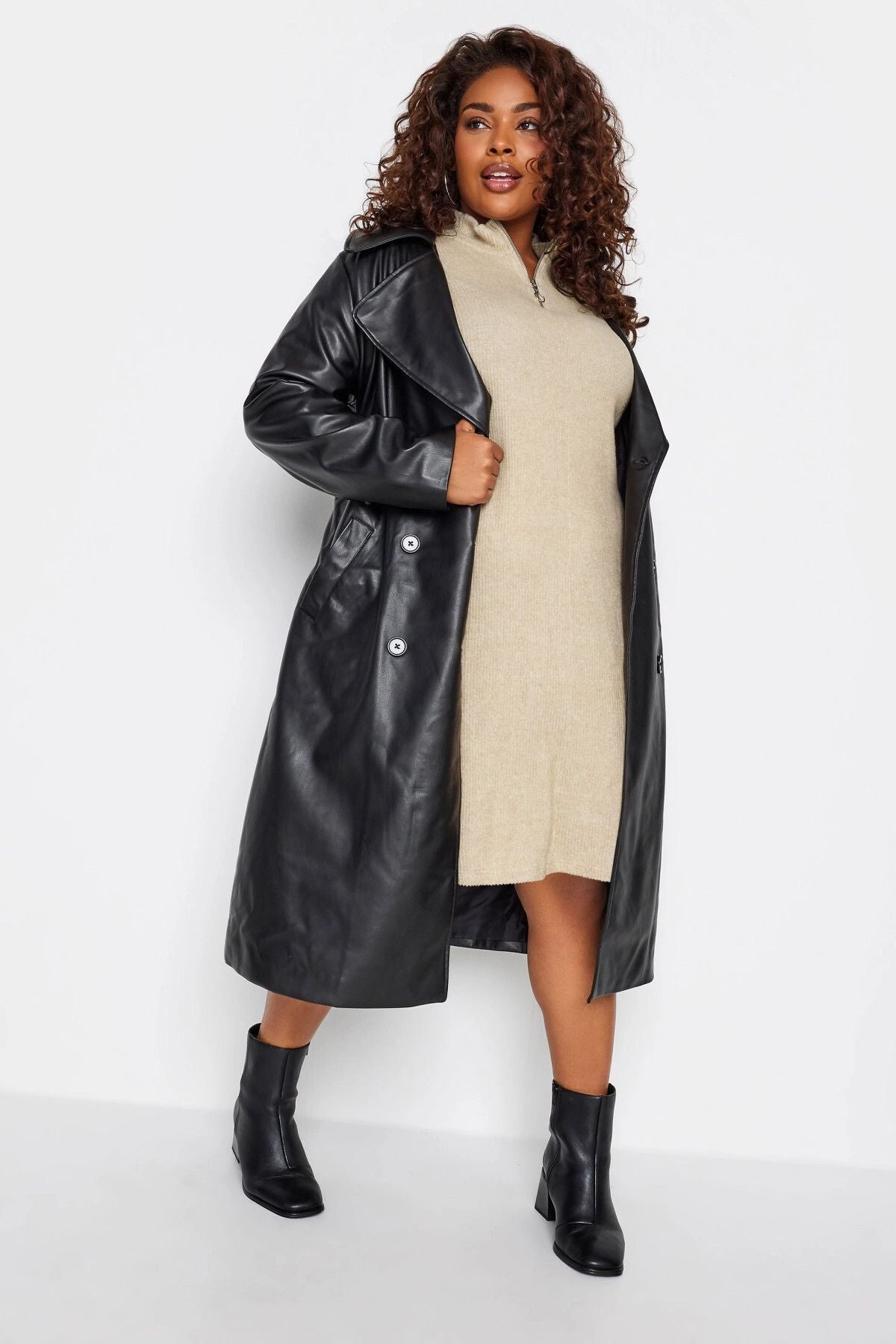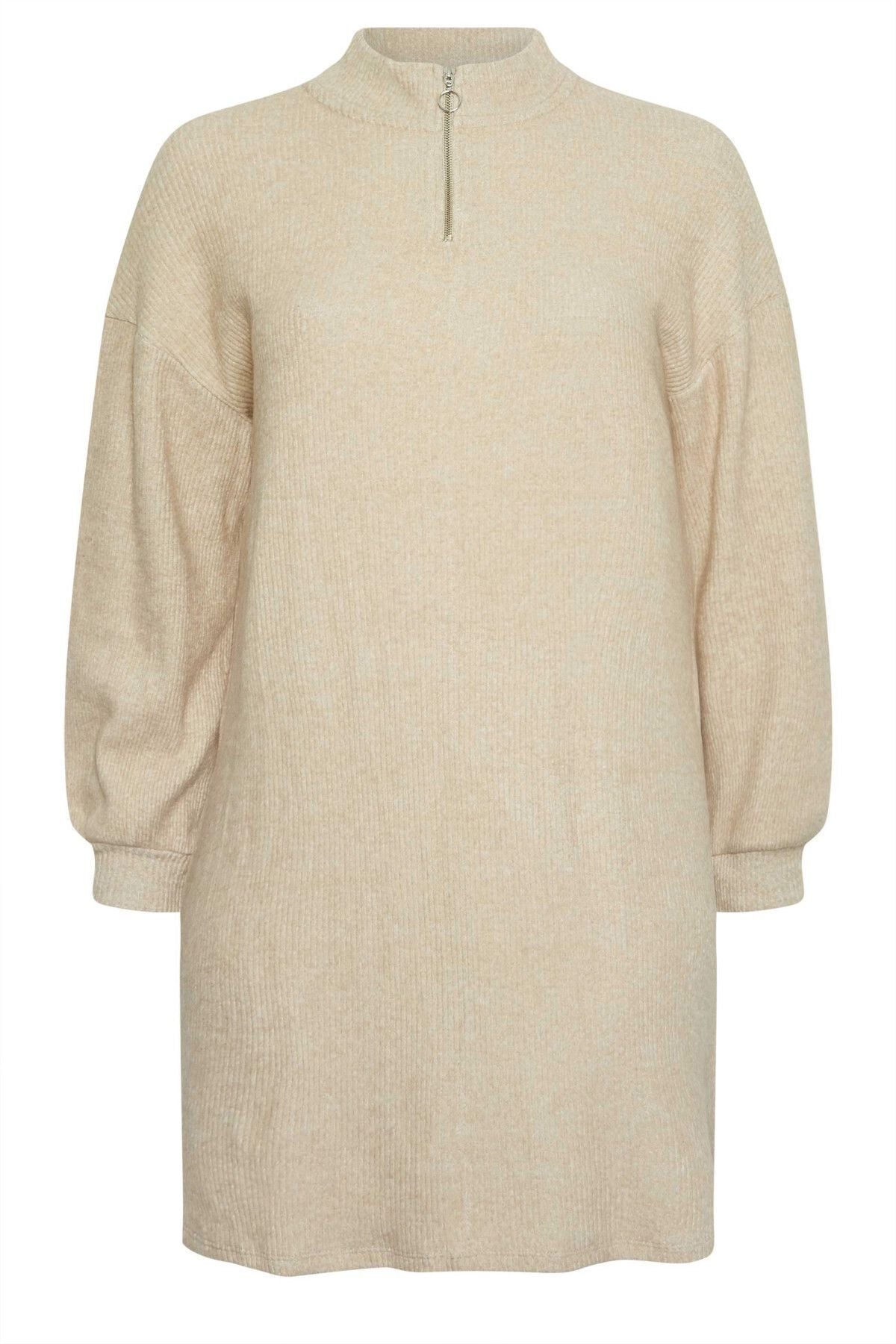 Büyük Beden Yakası Fermuarlı Uzun Kollu Midi Boy Elbise 302615