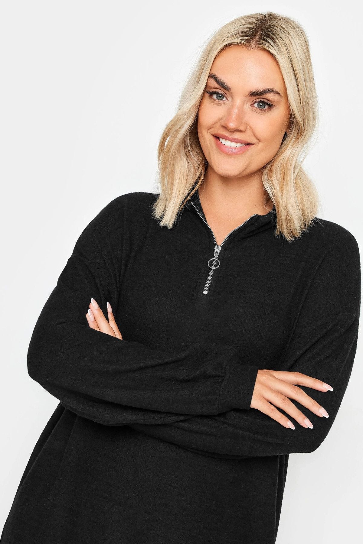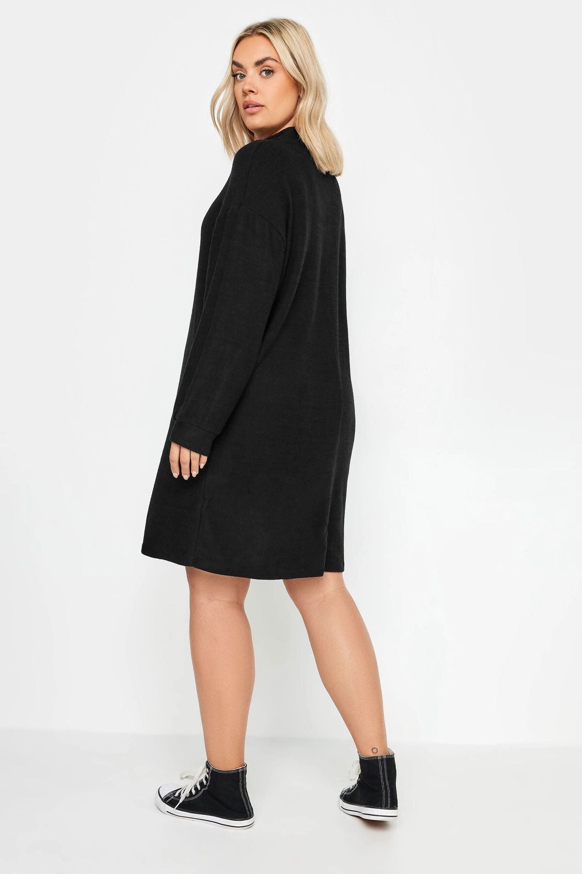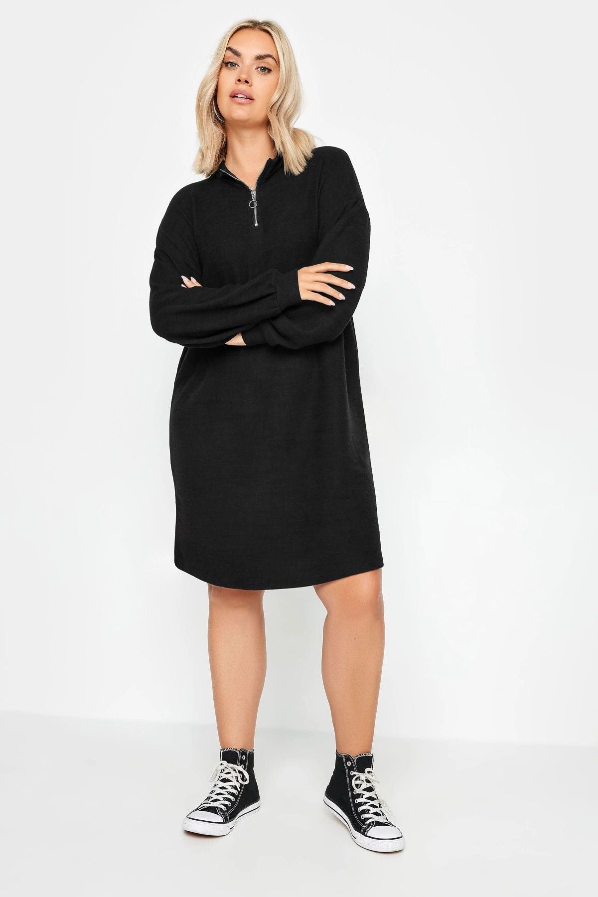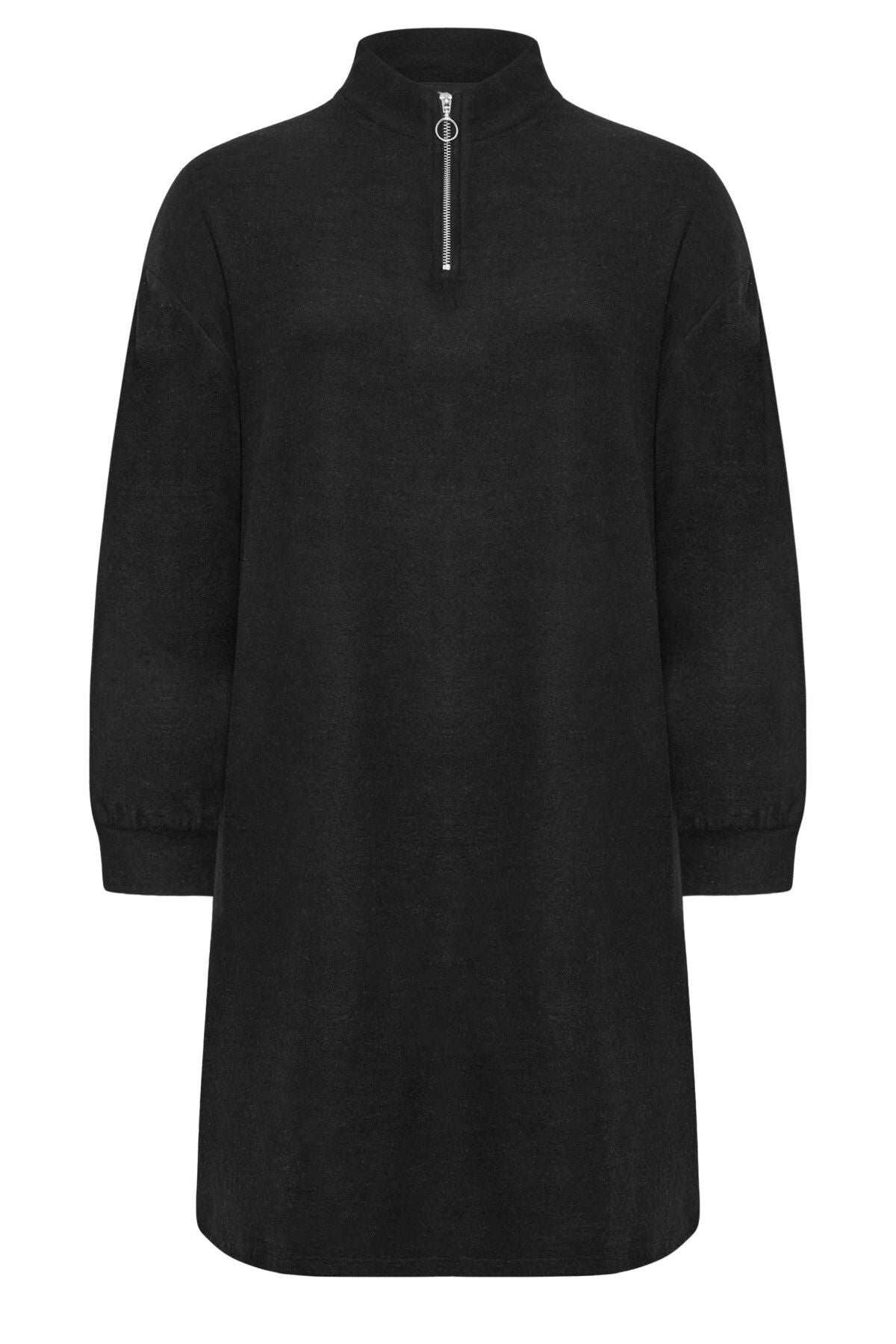 Büyük Beden Yakası Fermuarlı Uzun Kollu Midi Boy Elbise 321600