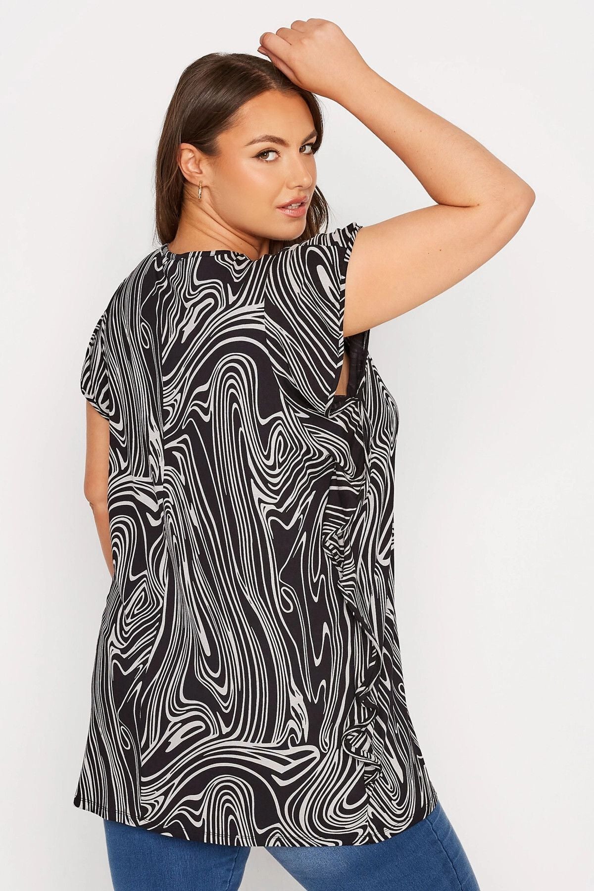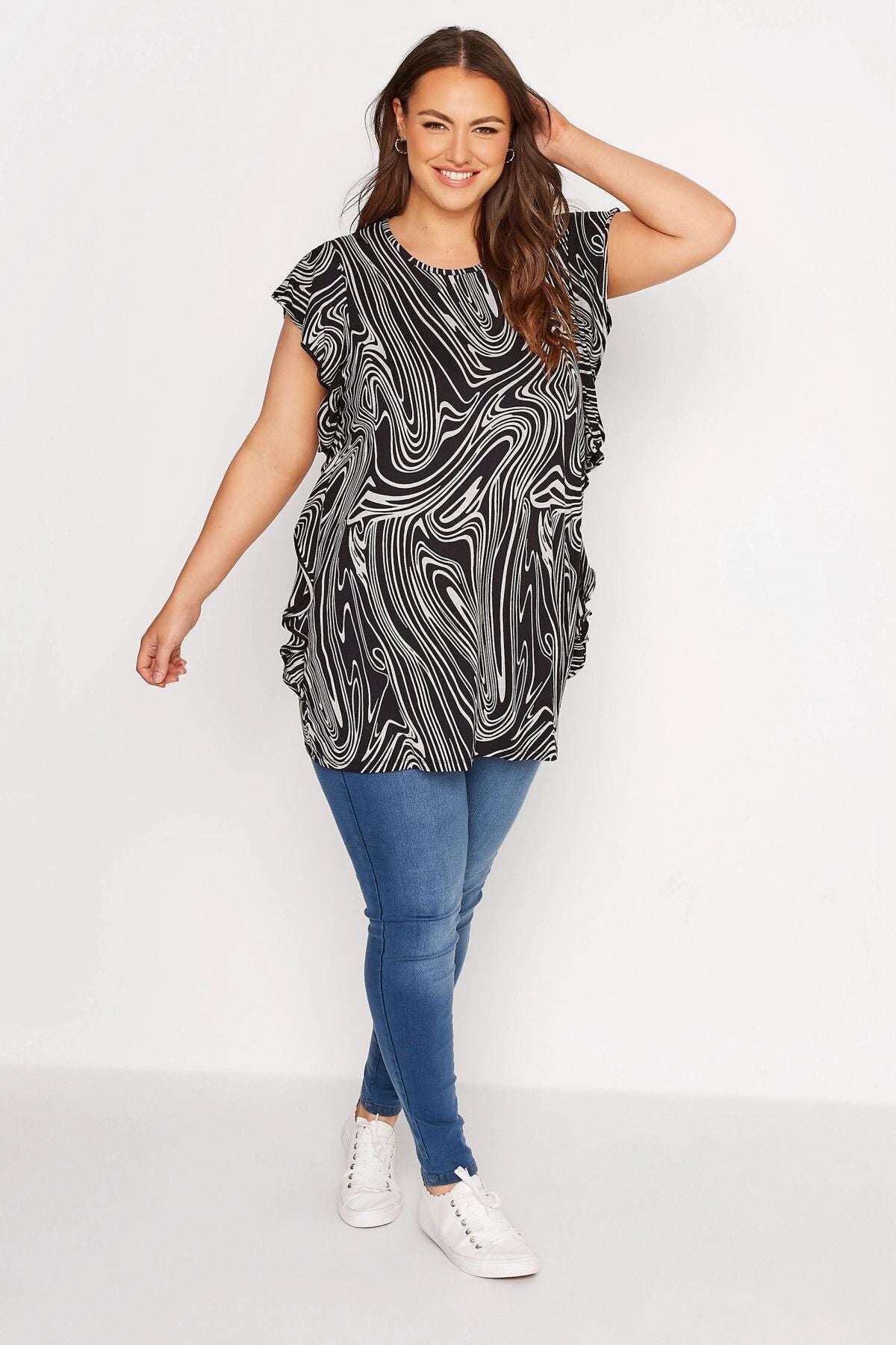 Büyük Beden Yanları Fırfırlı Kısa Kol Desenli Bluz 300410