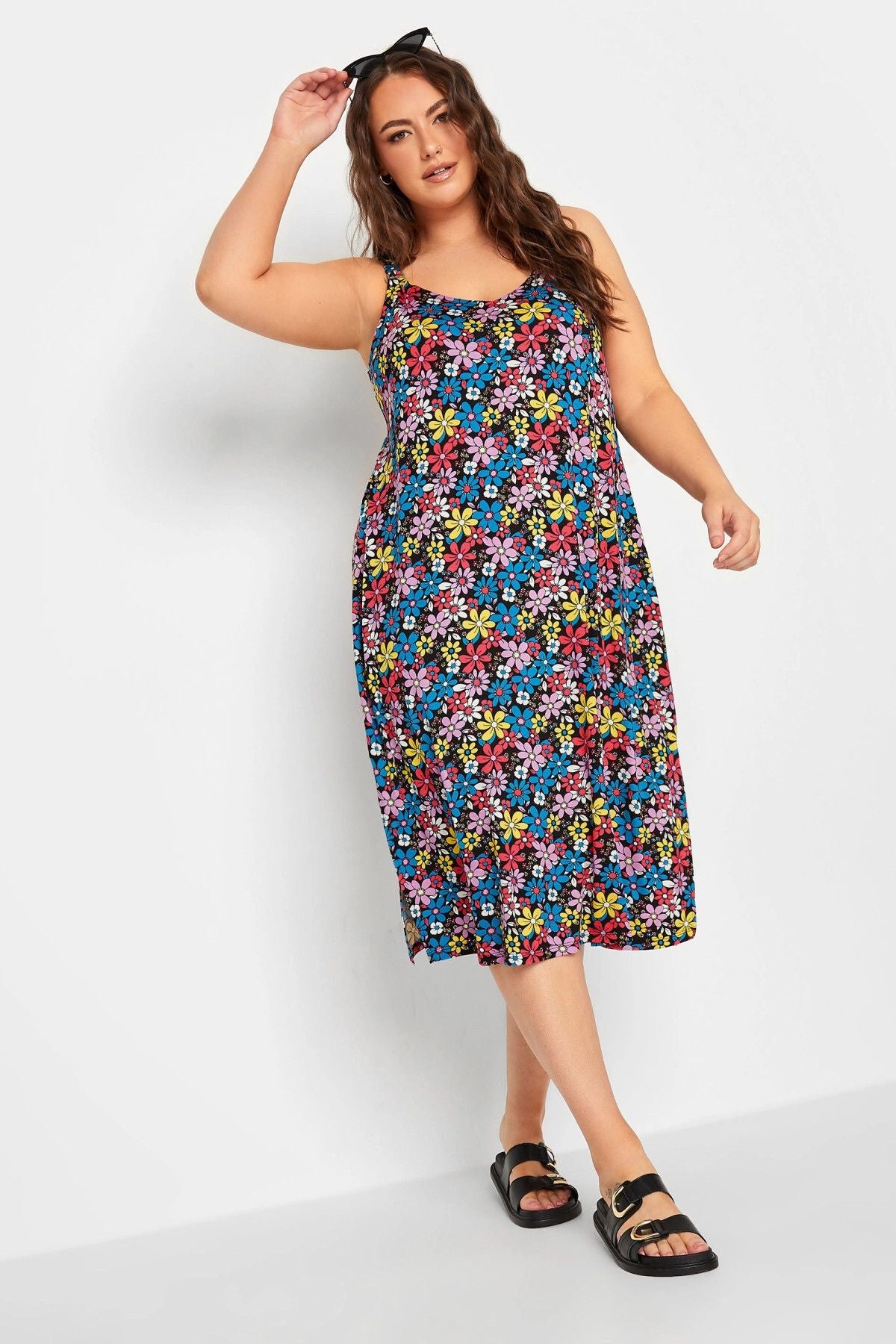Büyük Beden Yanları Yırtmaç Detaylı İnce Askılı Kısa Boy Elbise 302297
