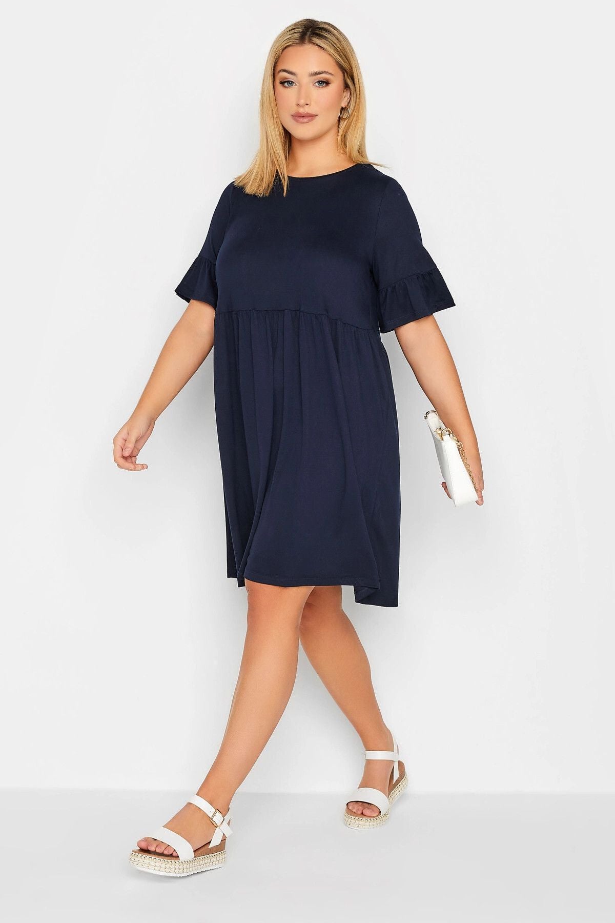 Büyük Beden Yarım Kol Yuvarlak Yaka Basic Kısa Elbise 137186