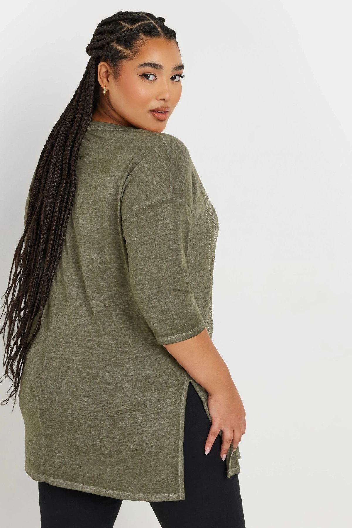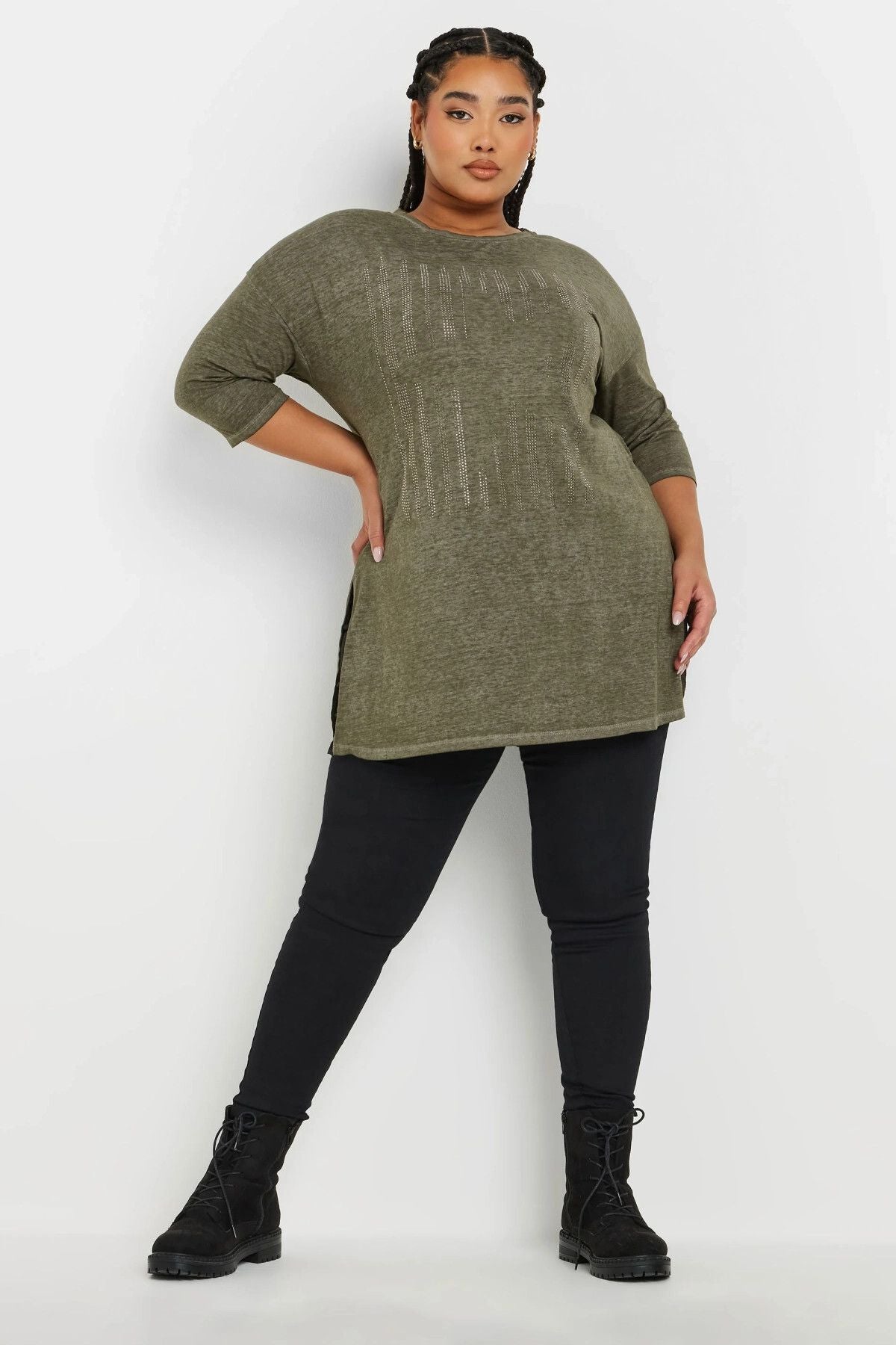 Büyük Beden Yarım Kollu Bisiklet Yaka Taş İşlemeli T-Shirt 173260