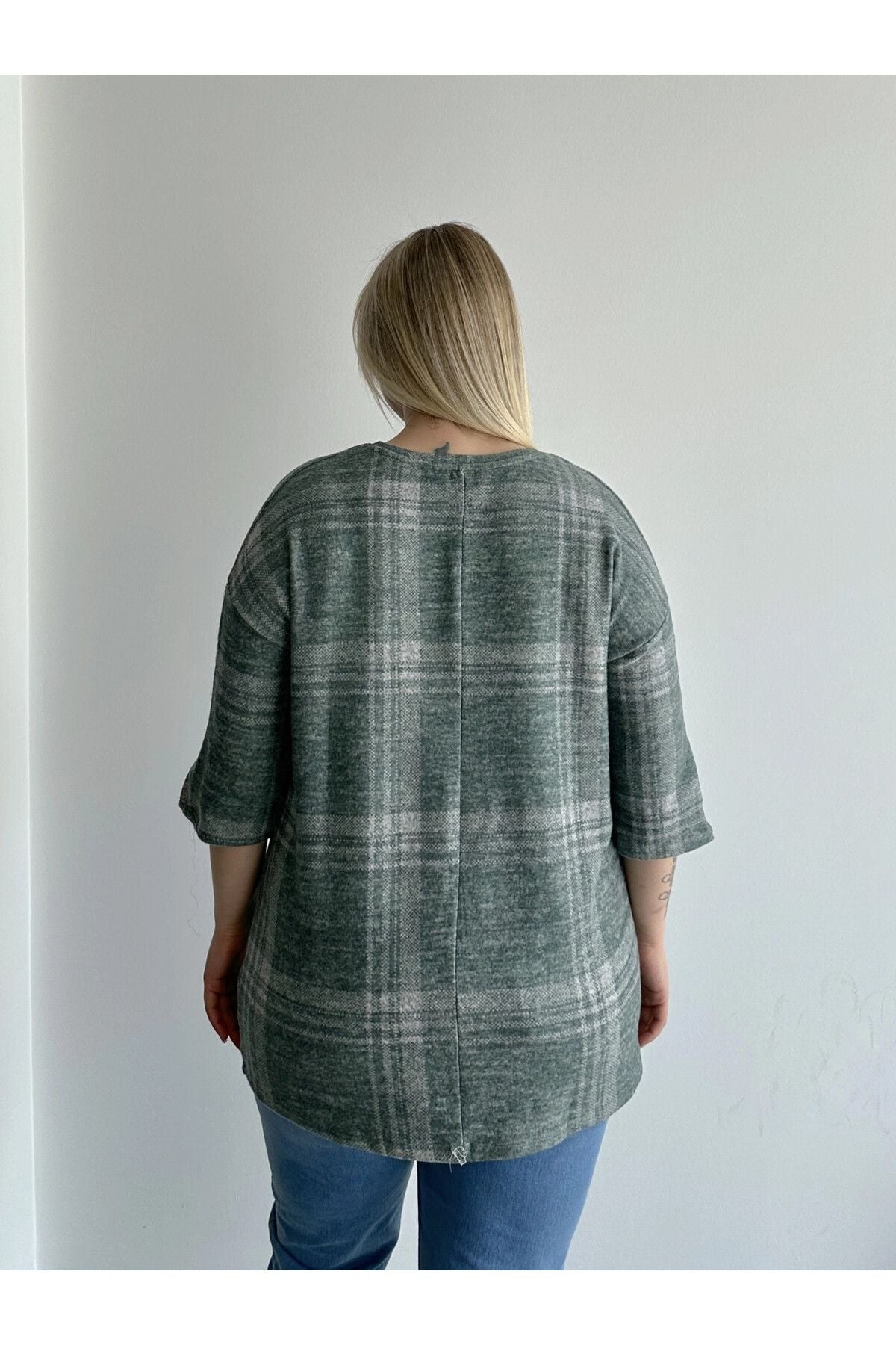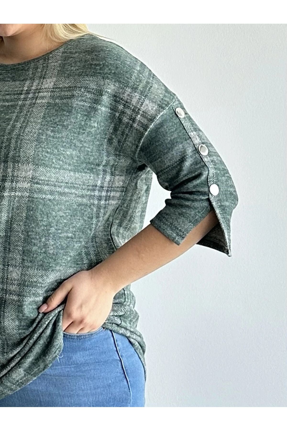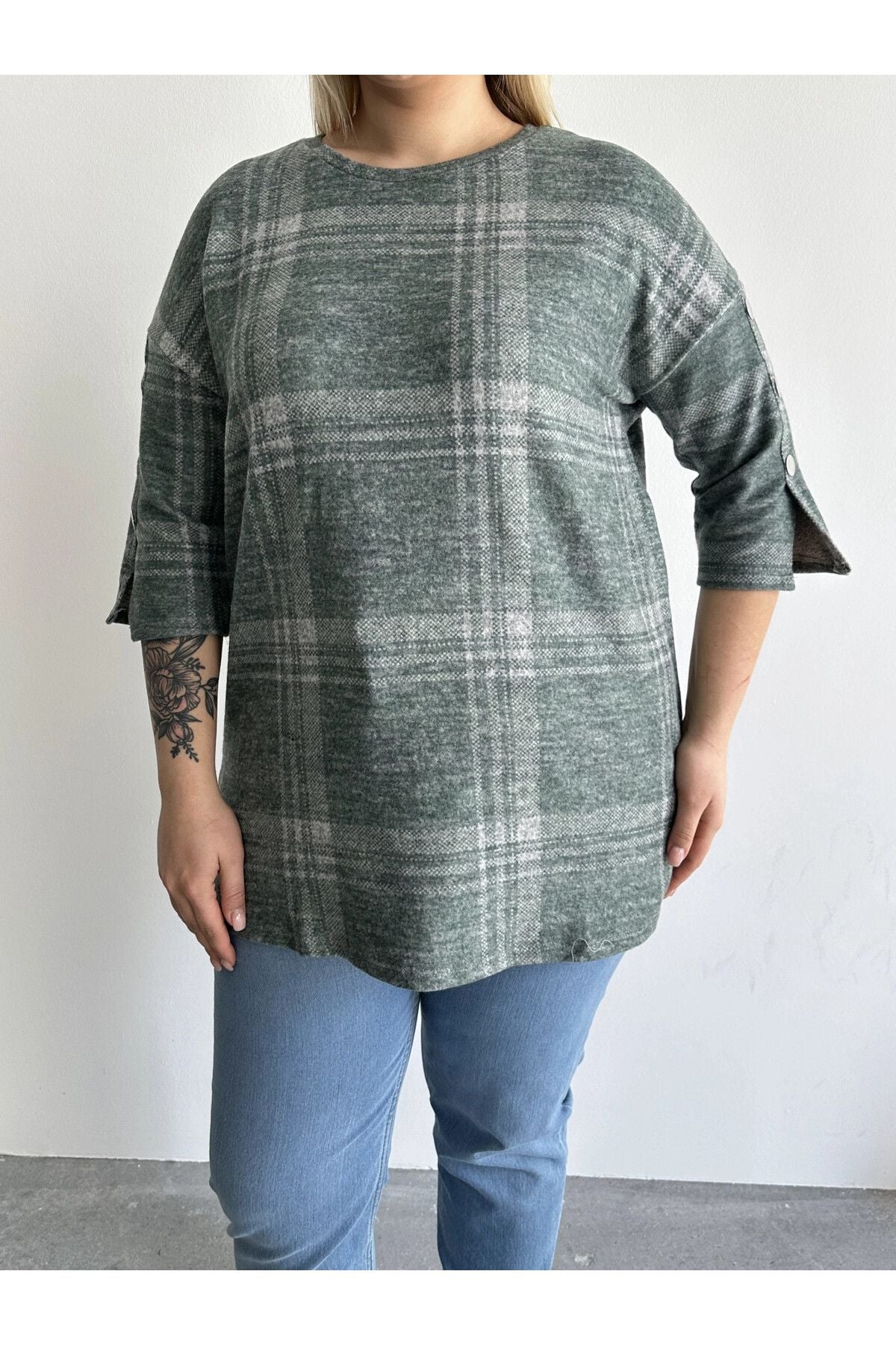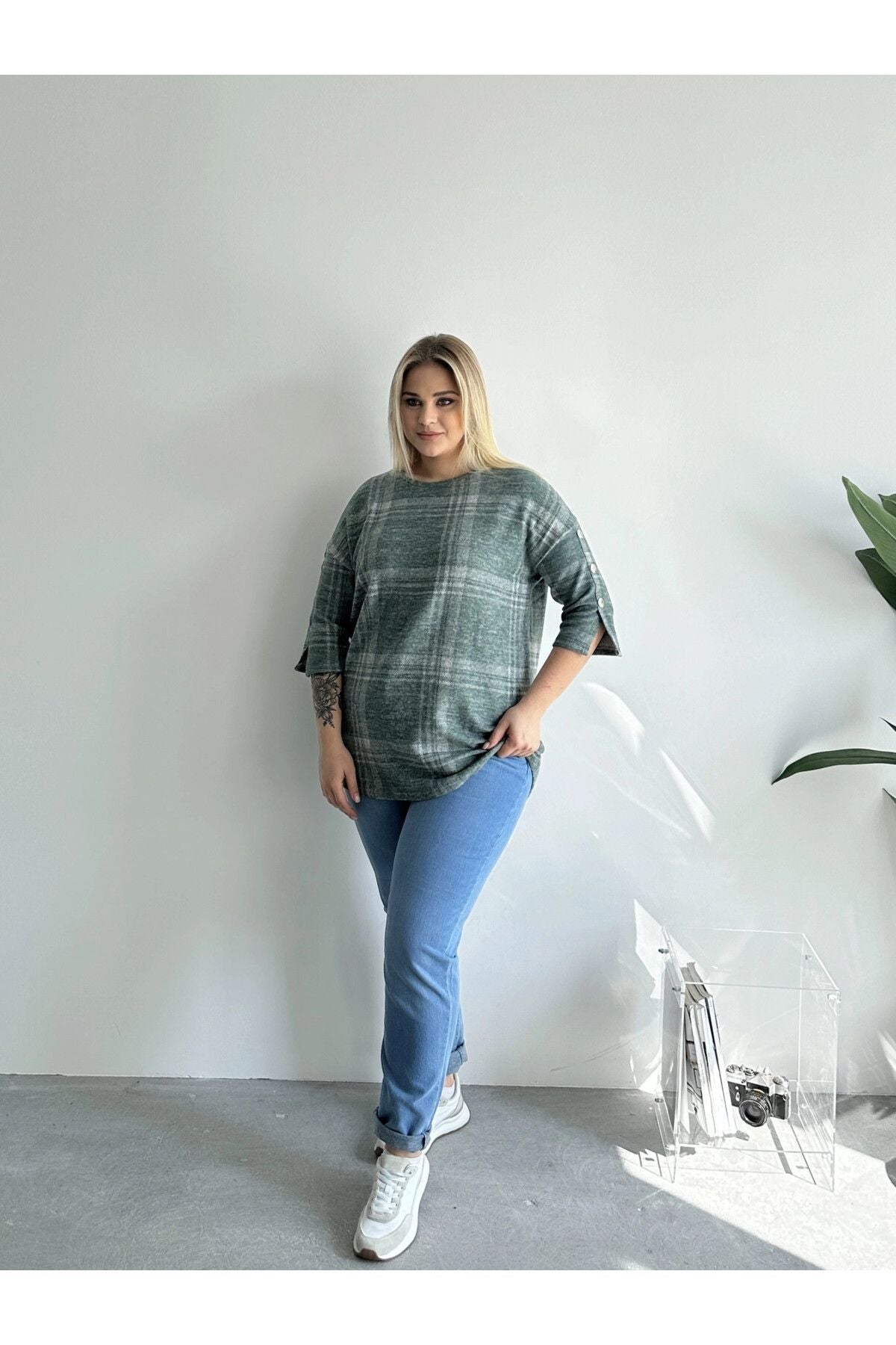 Büyük Beden Yarım Kollu Düğme Detaylı Yumuşak Dokulu Kazak 302780