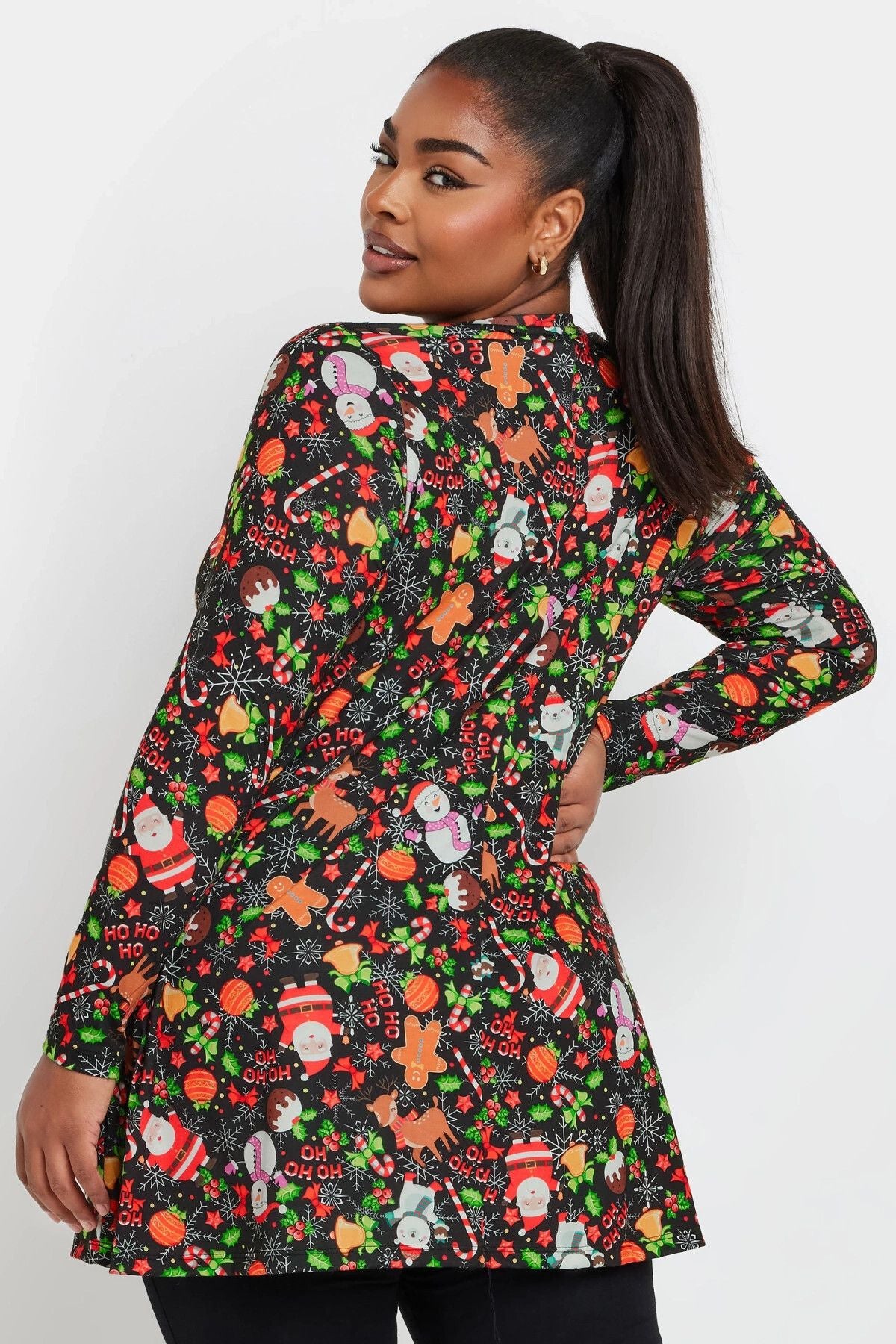 Büyük Beden Yılbaşı Temalı Bisiklet Yaka Uzun Kollu Eteği Bollaşan Bluz 322215