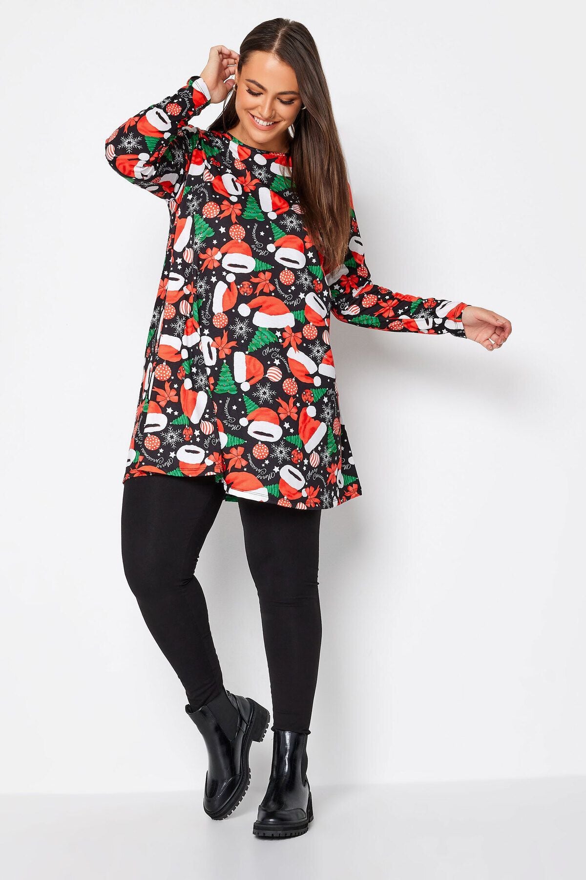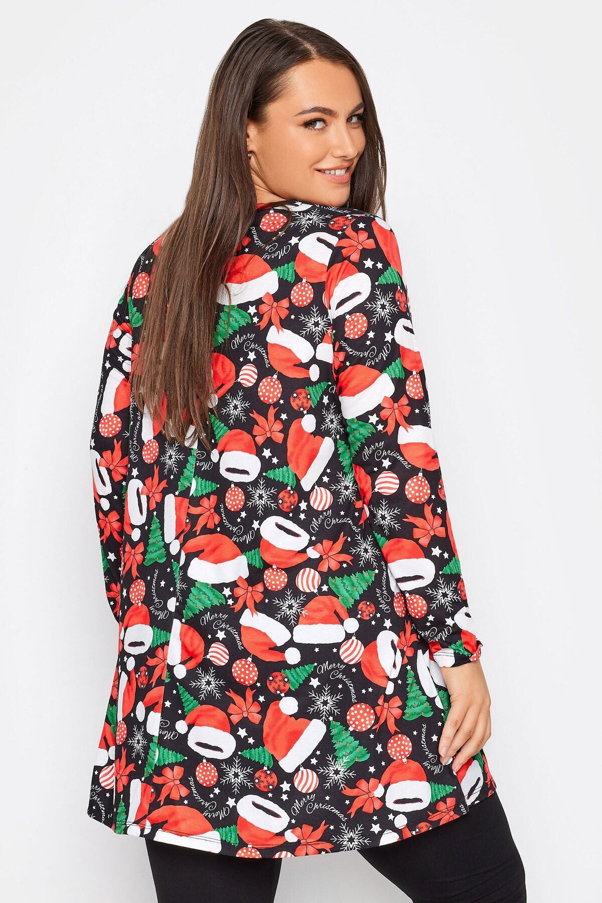 Büyük Beden Yılbaşı Temalı Bisiklet Yaka Uzun Kollu Uzun Kesim Bluz 321243