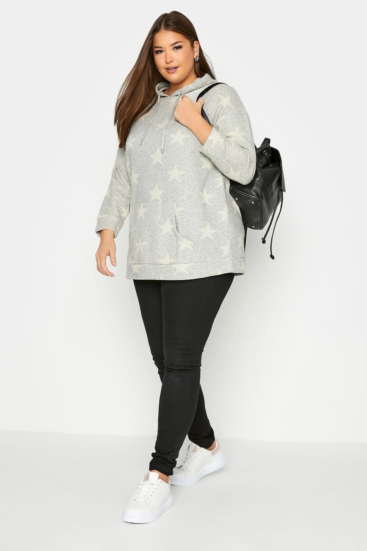 Büyük Beden Yıldız Baskılı Cepli Kapüşonlu Uzun Kollu Sweatshirt 300185