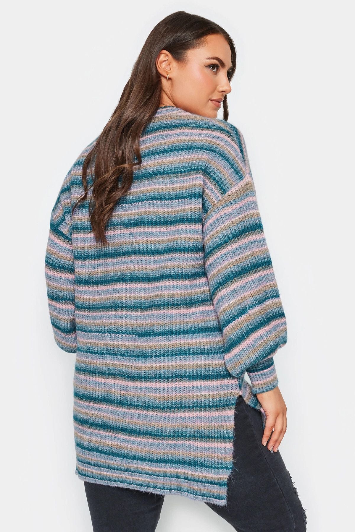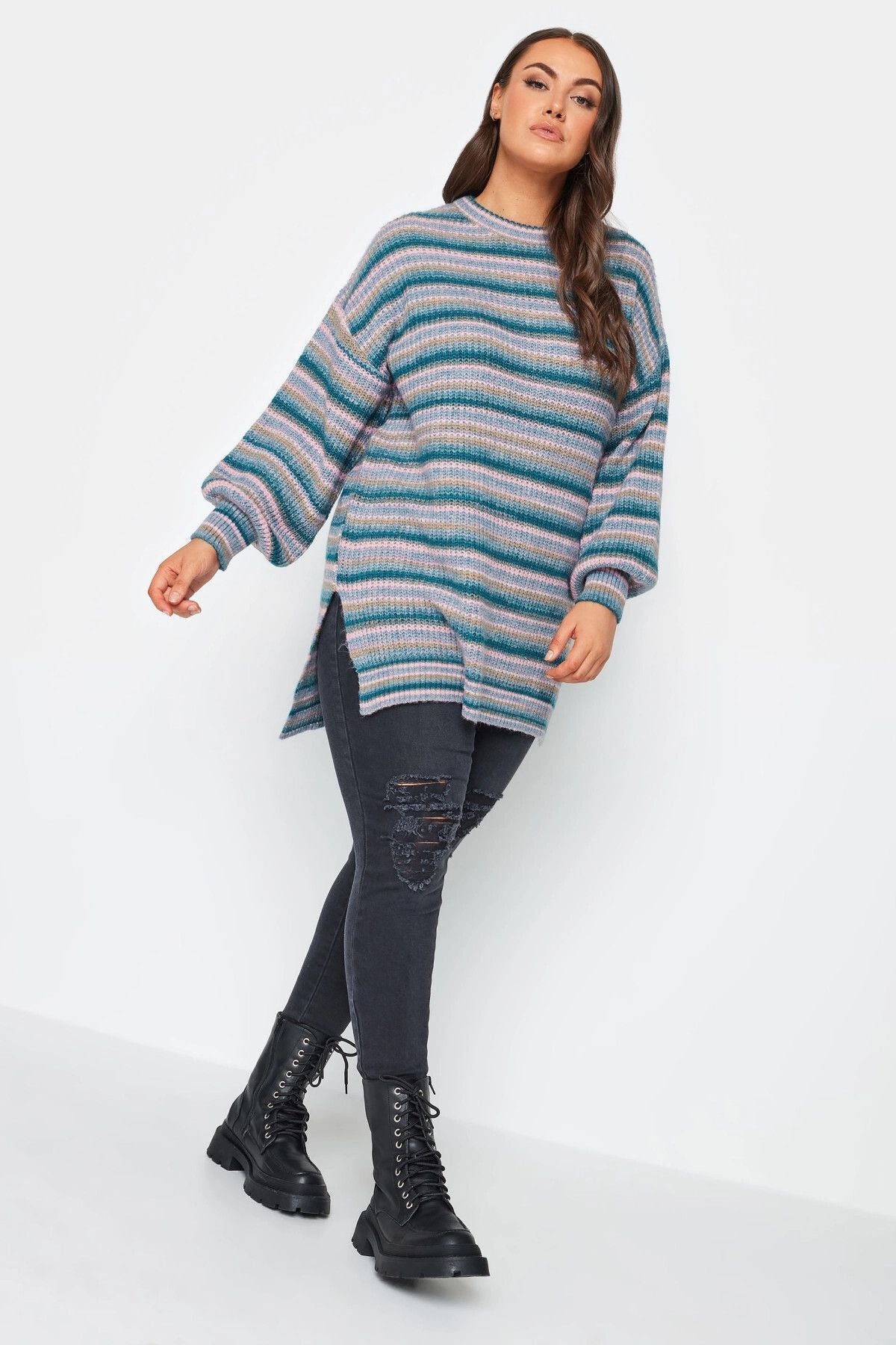 Büyük Beden Yırtmaç Detaylı Balon Kol Triko Örme Kazak 302315