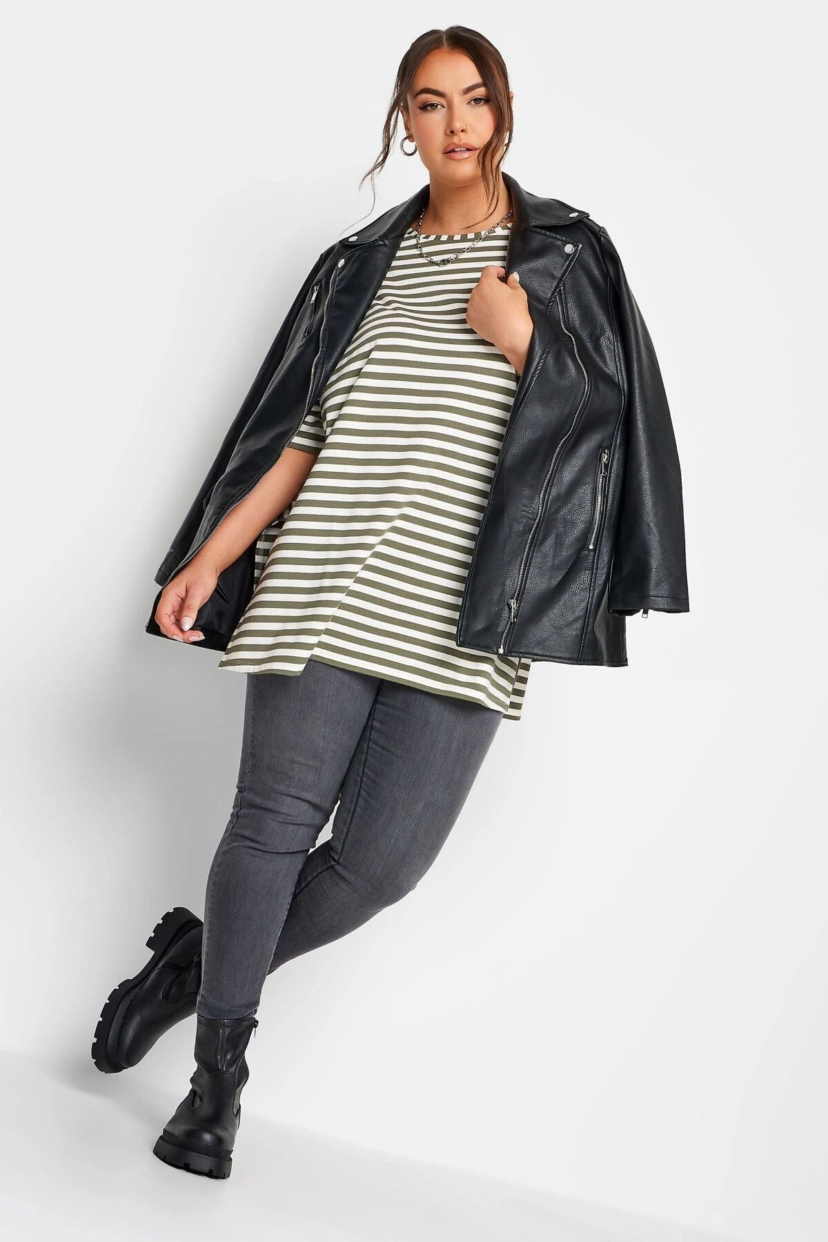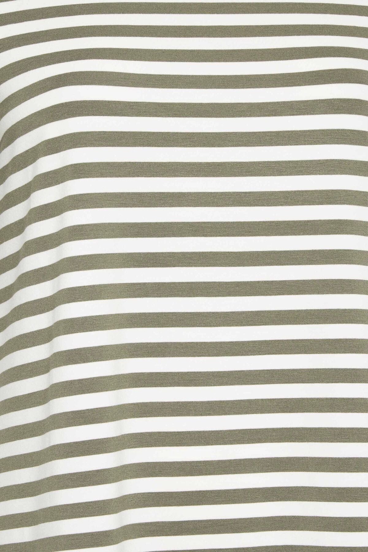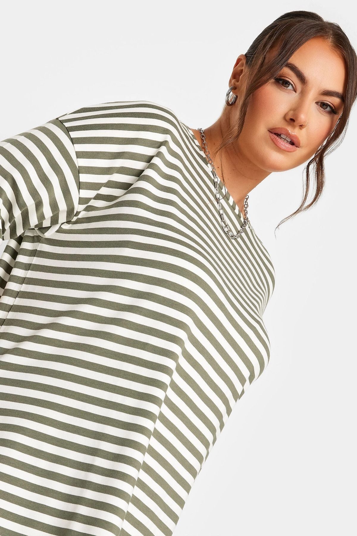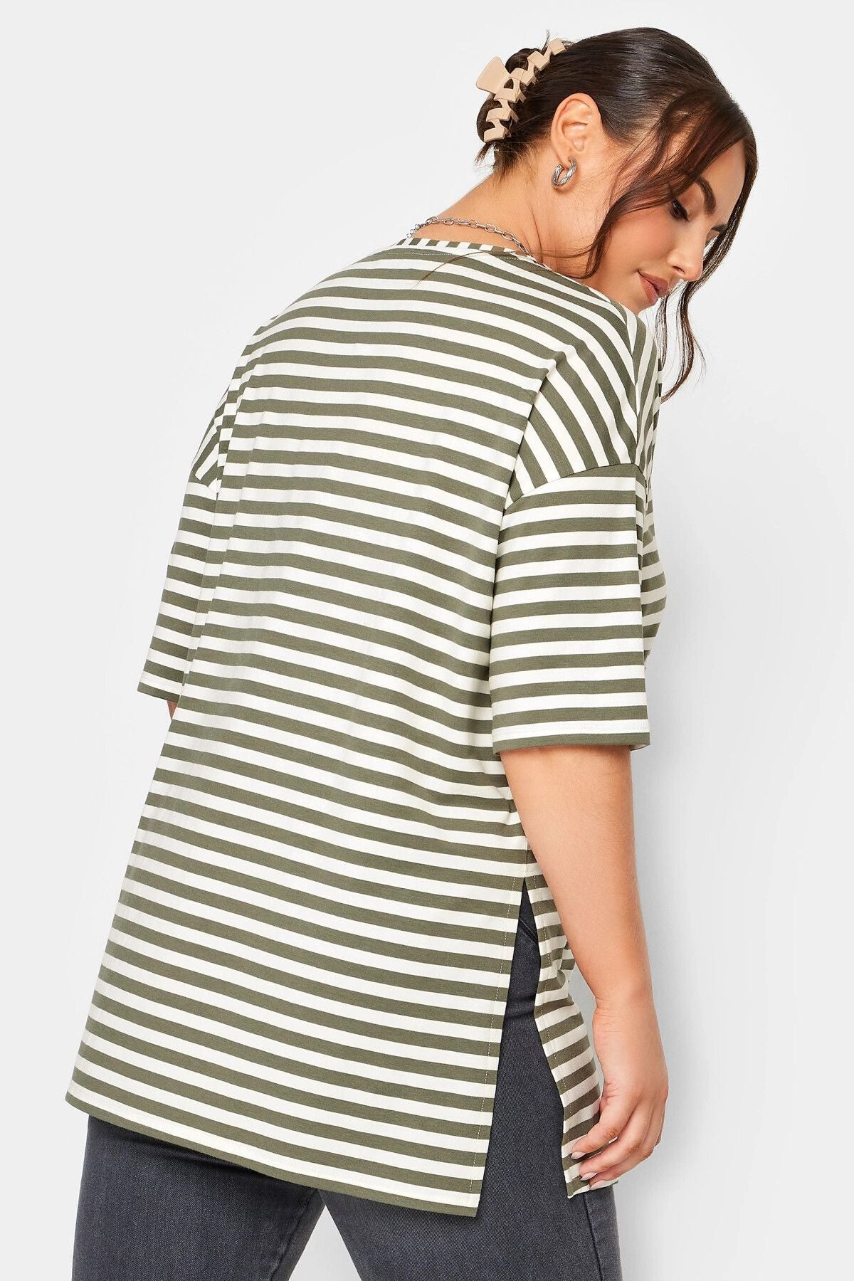 Büyük Beden Yırtmaç Detaylı Çizgili Yarım Kol Bisiklet Yaka Bluz 321119