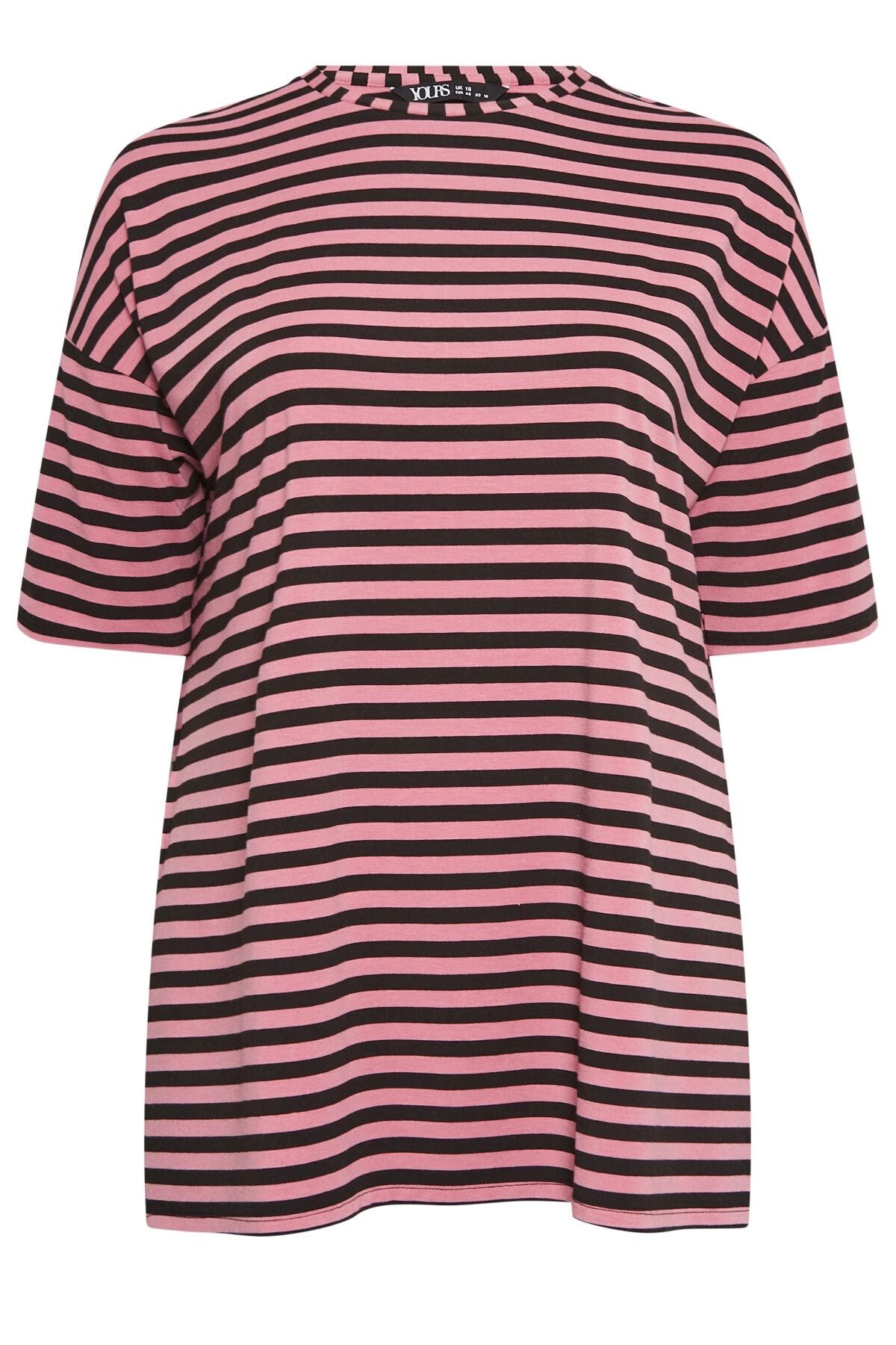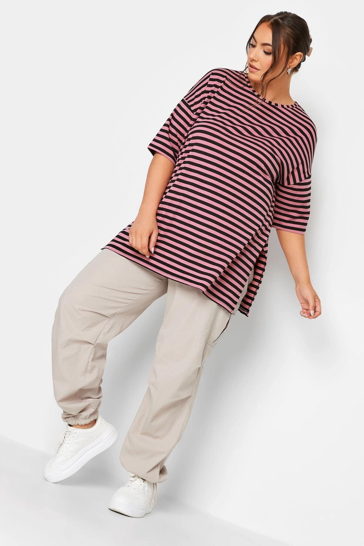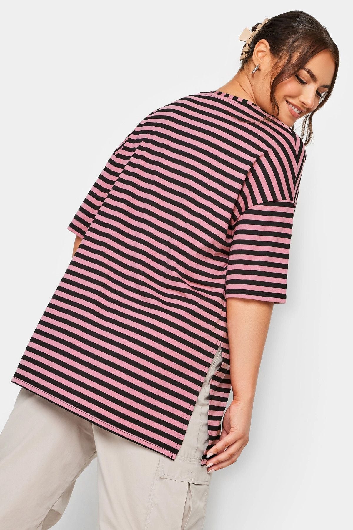 Büyük Beden Yırtmaç Detaylı Çizgili Yarım Kol Bisiklet Yaka Bluz 321120