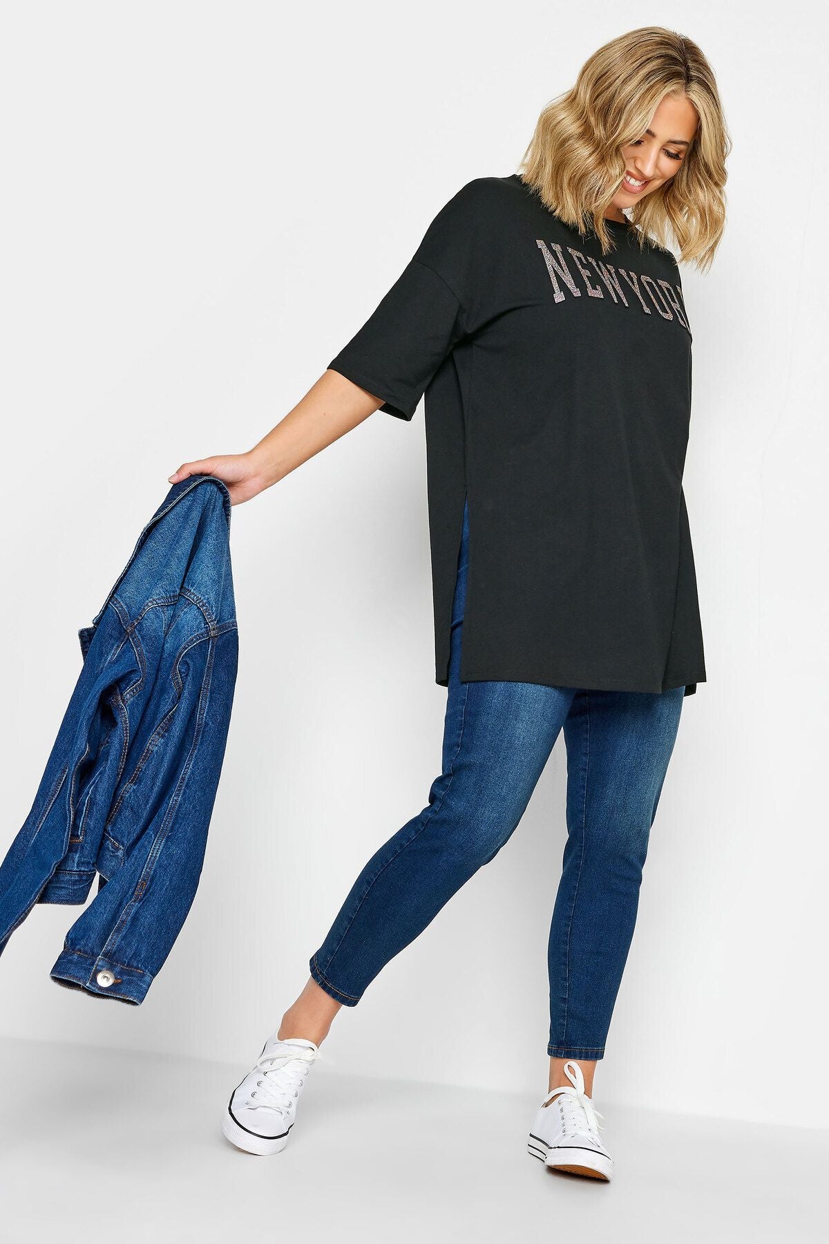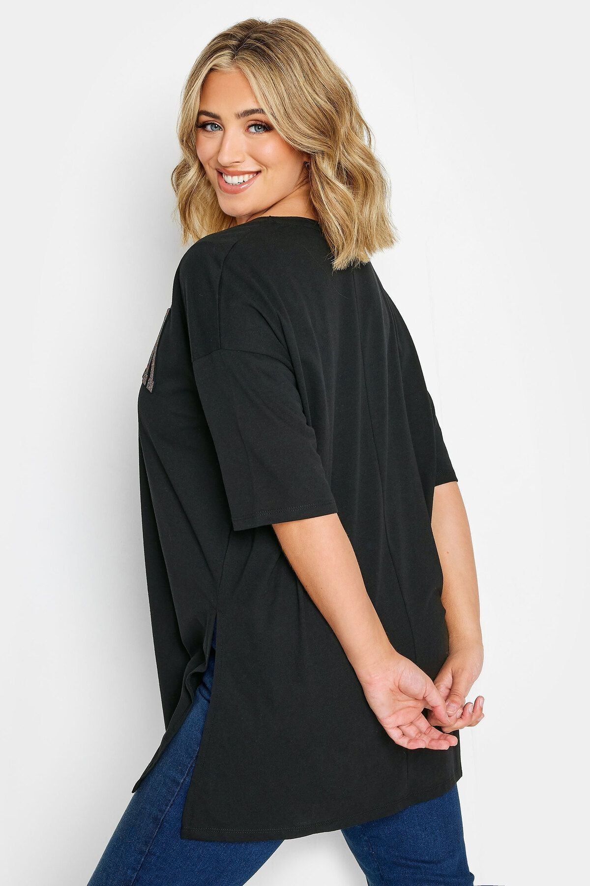 Büyük Beden Yırtmaç Detaylı Kabartma Detaylı Bisiklet Yaka Yarım Kollu T-shirt 302200