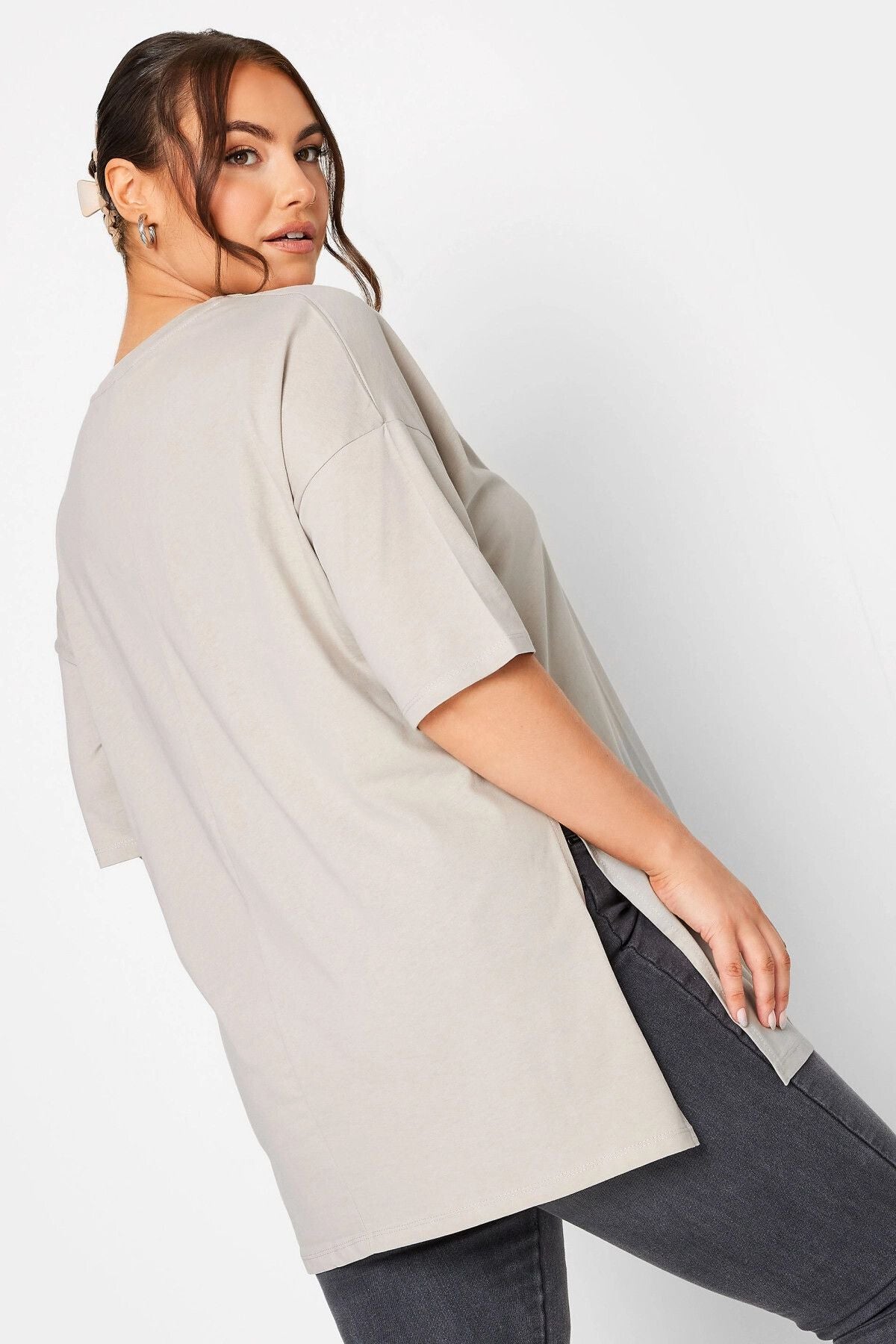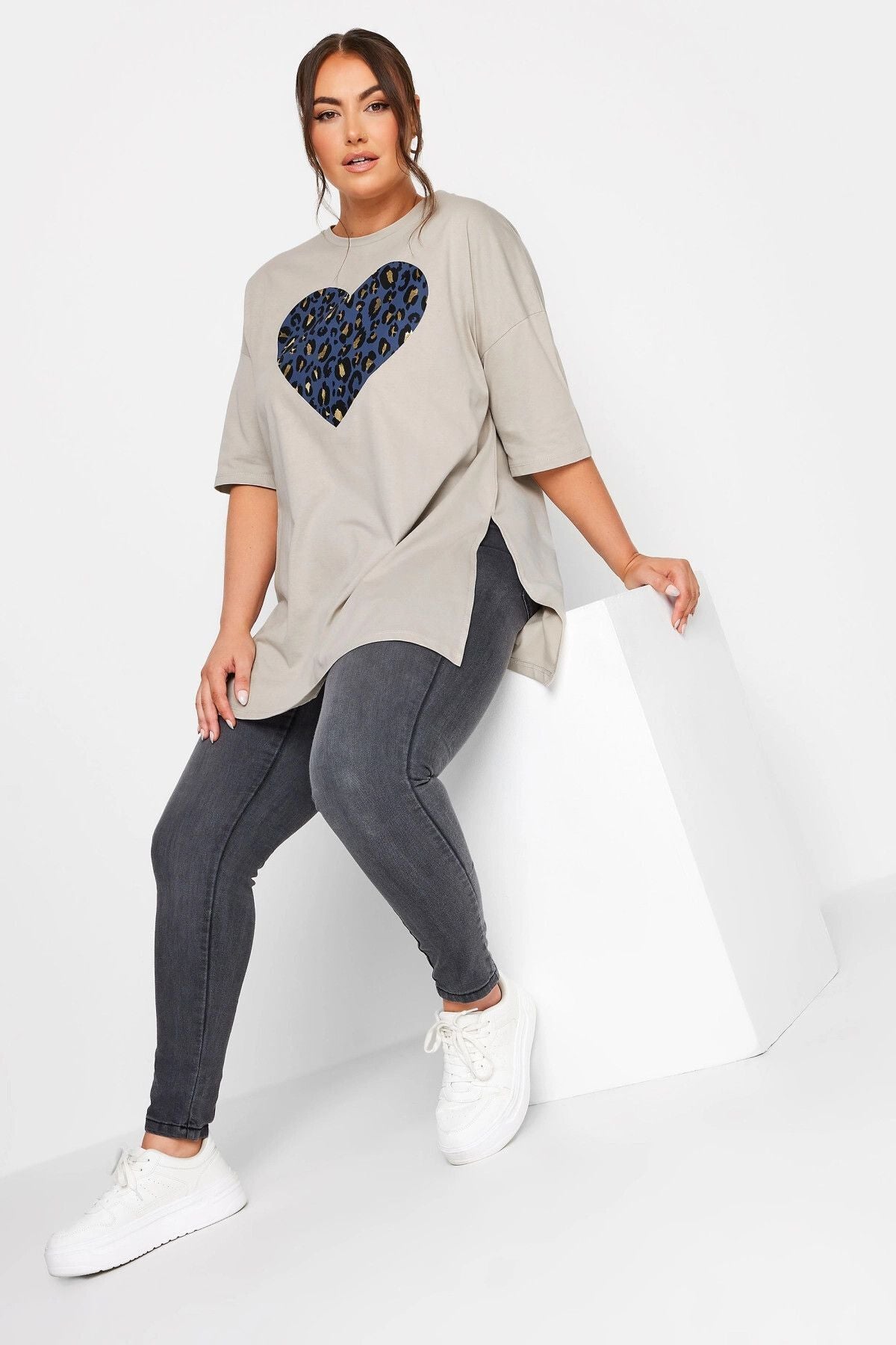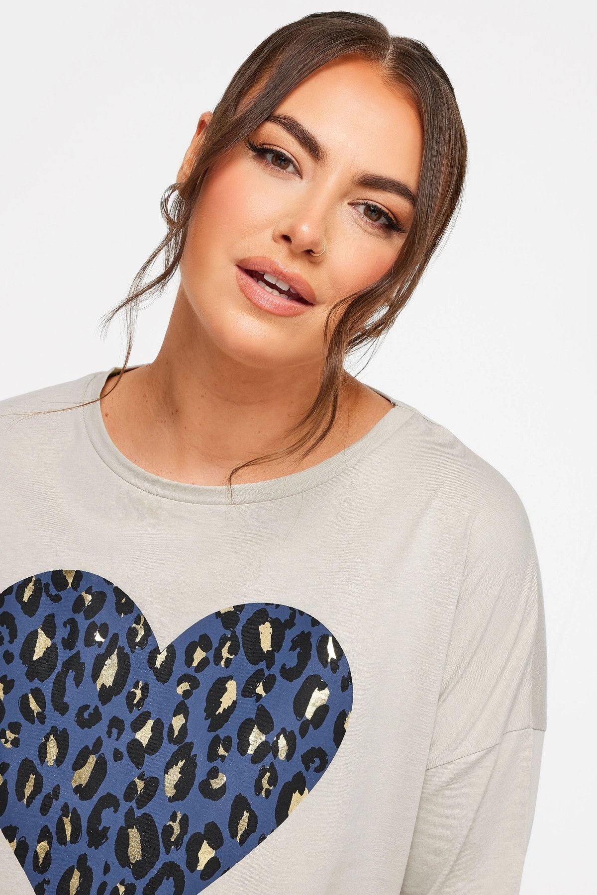 Büyük Beden Yırtmaç Detaylı Kalp Desenli Bisiklet Yaka Yarım Kol Bluz 321122