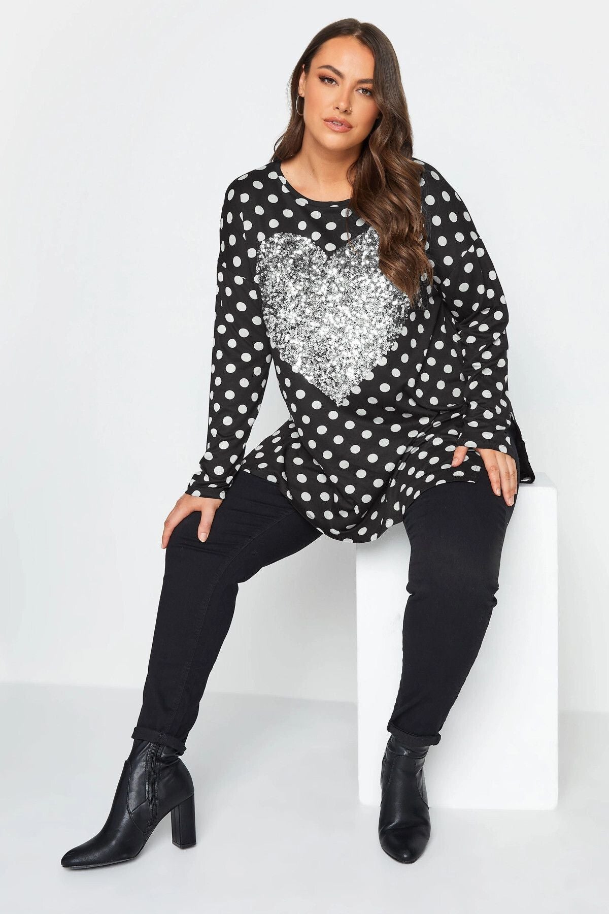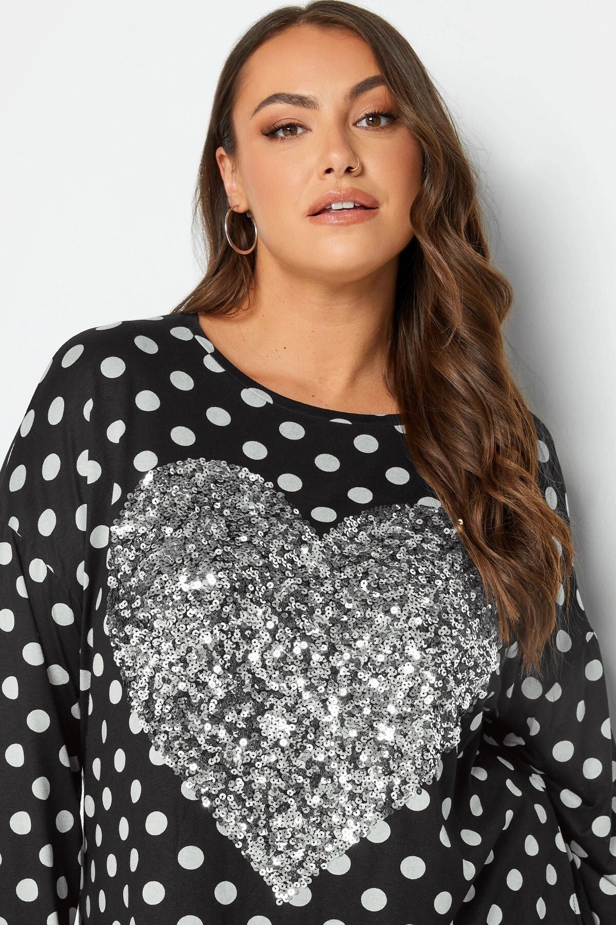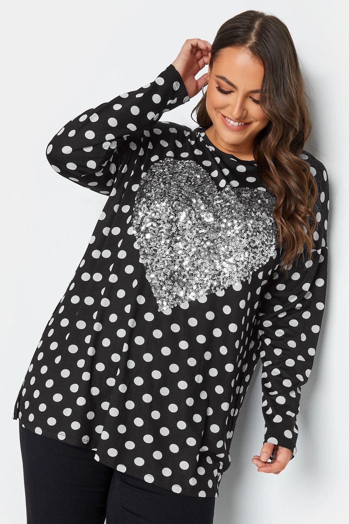 Büyük Beden Yırtmaç Detaylı Puantiyeli Payetli Uzun Kollu Bisiklet Yaka Bluz 302496