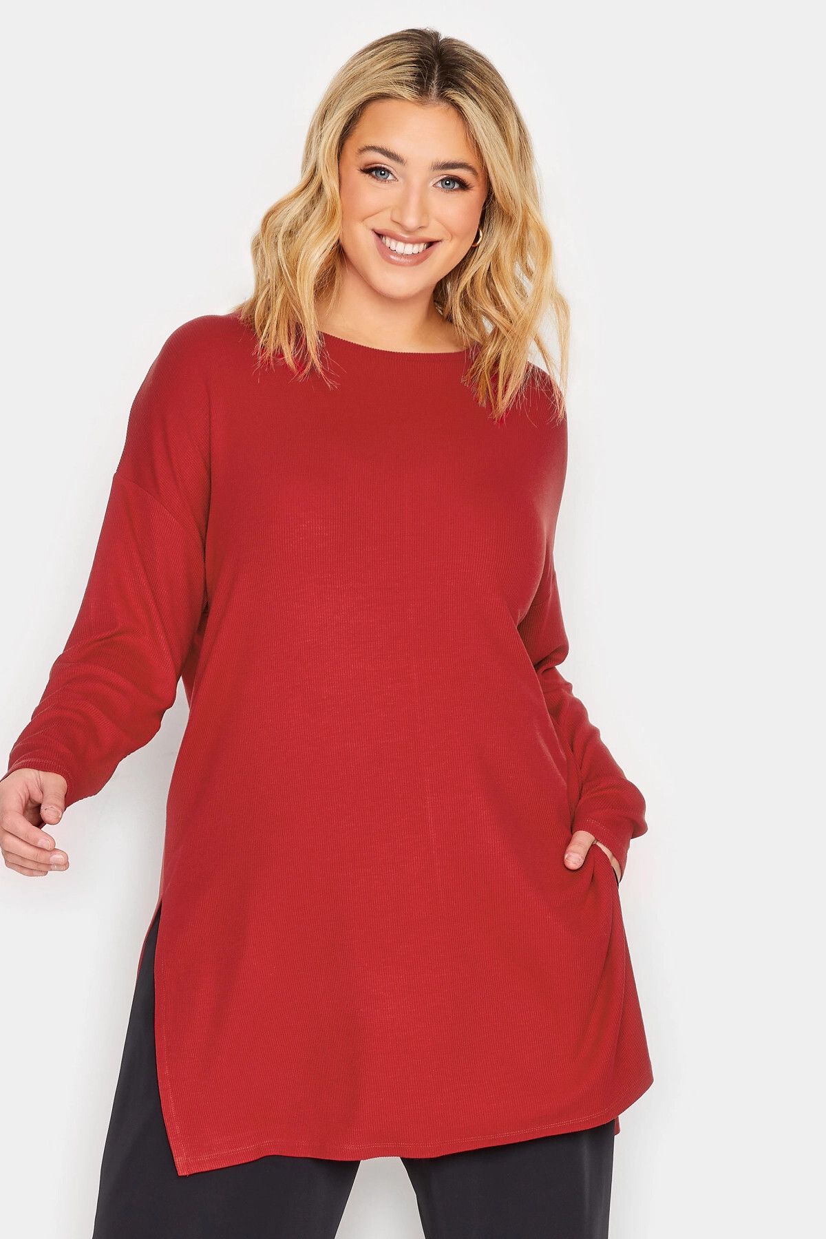 Büyük Beden Yırtmaç Detaylı Uzun Kesim Bisiklet Yaka Triko Bluz 301700