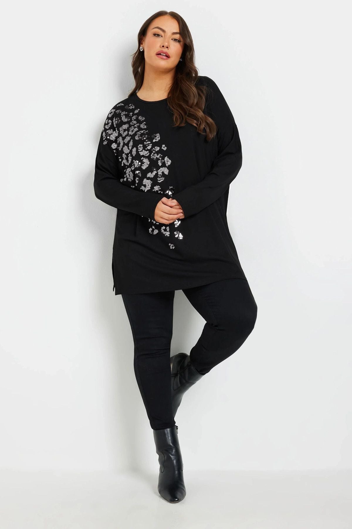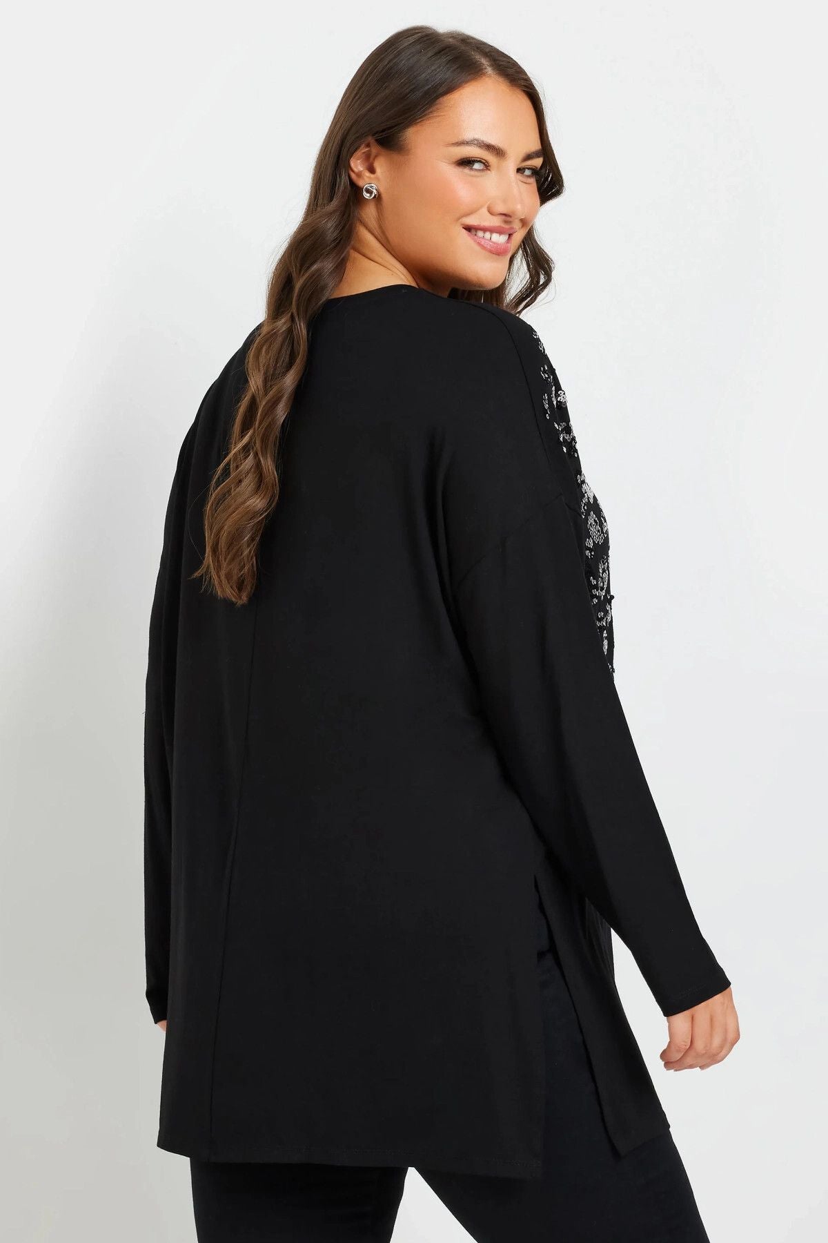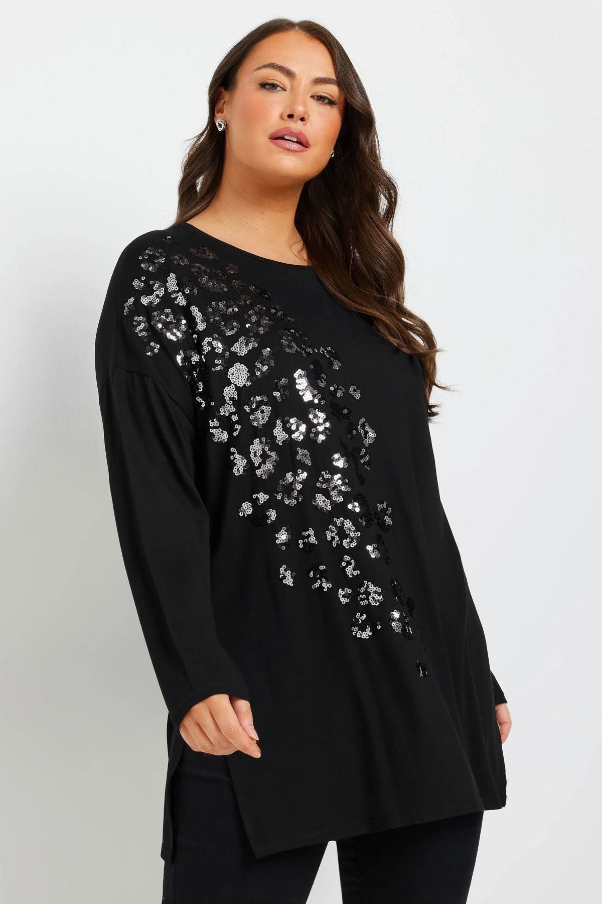 Büyük Beden Yırtmaçlı Payet İşlemeli Uzun Kollu İnce Bluz 322270