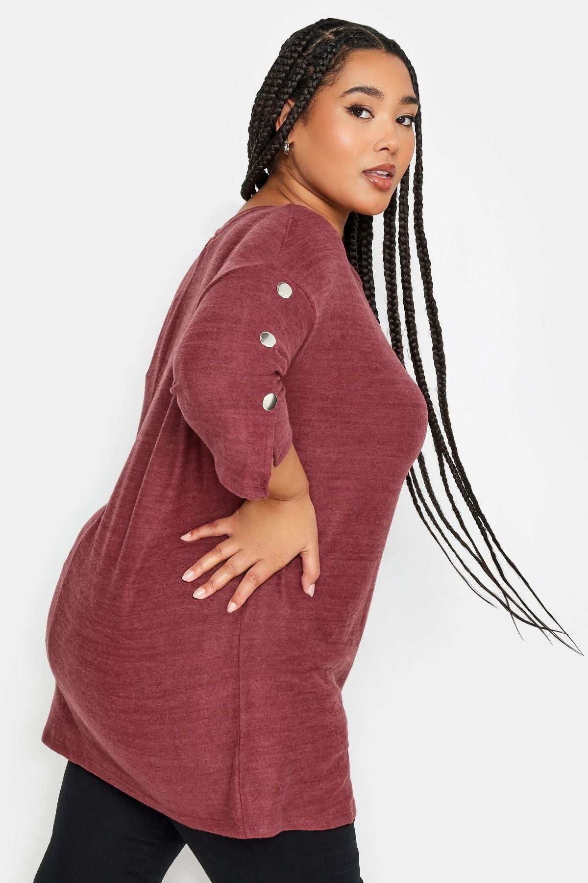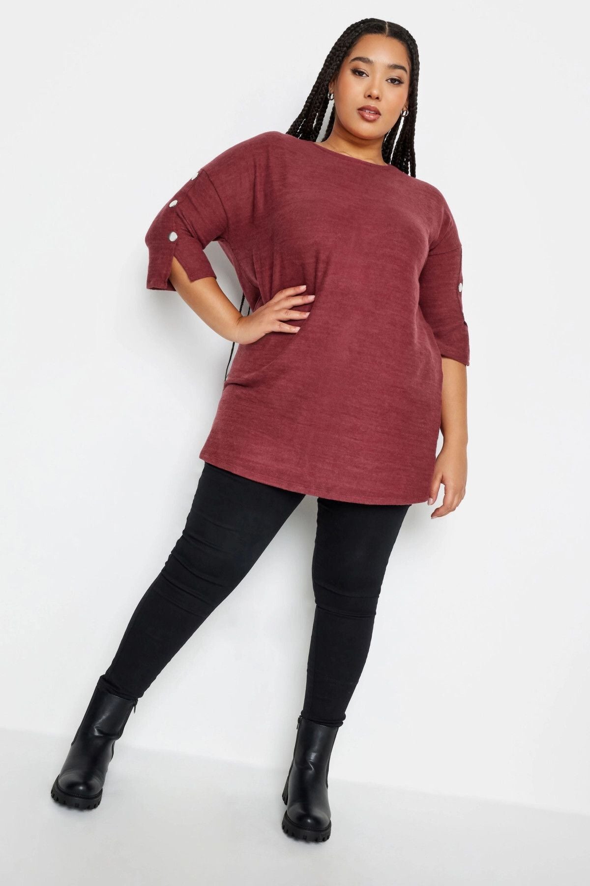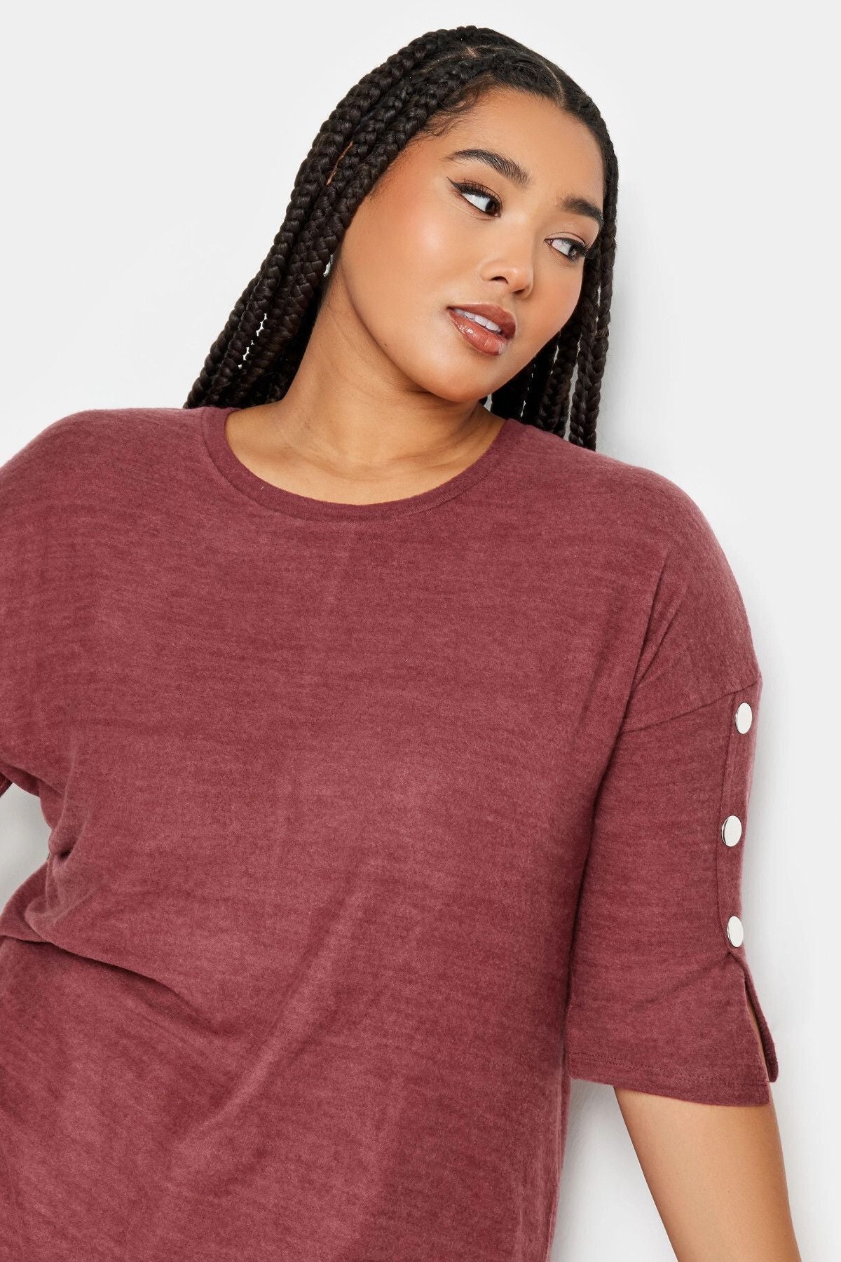 Büyük Beden Yumuşak Dokulu Bisiklet Yaka Düğme Detaylı Bluz 302680