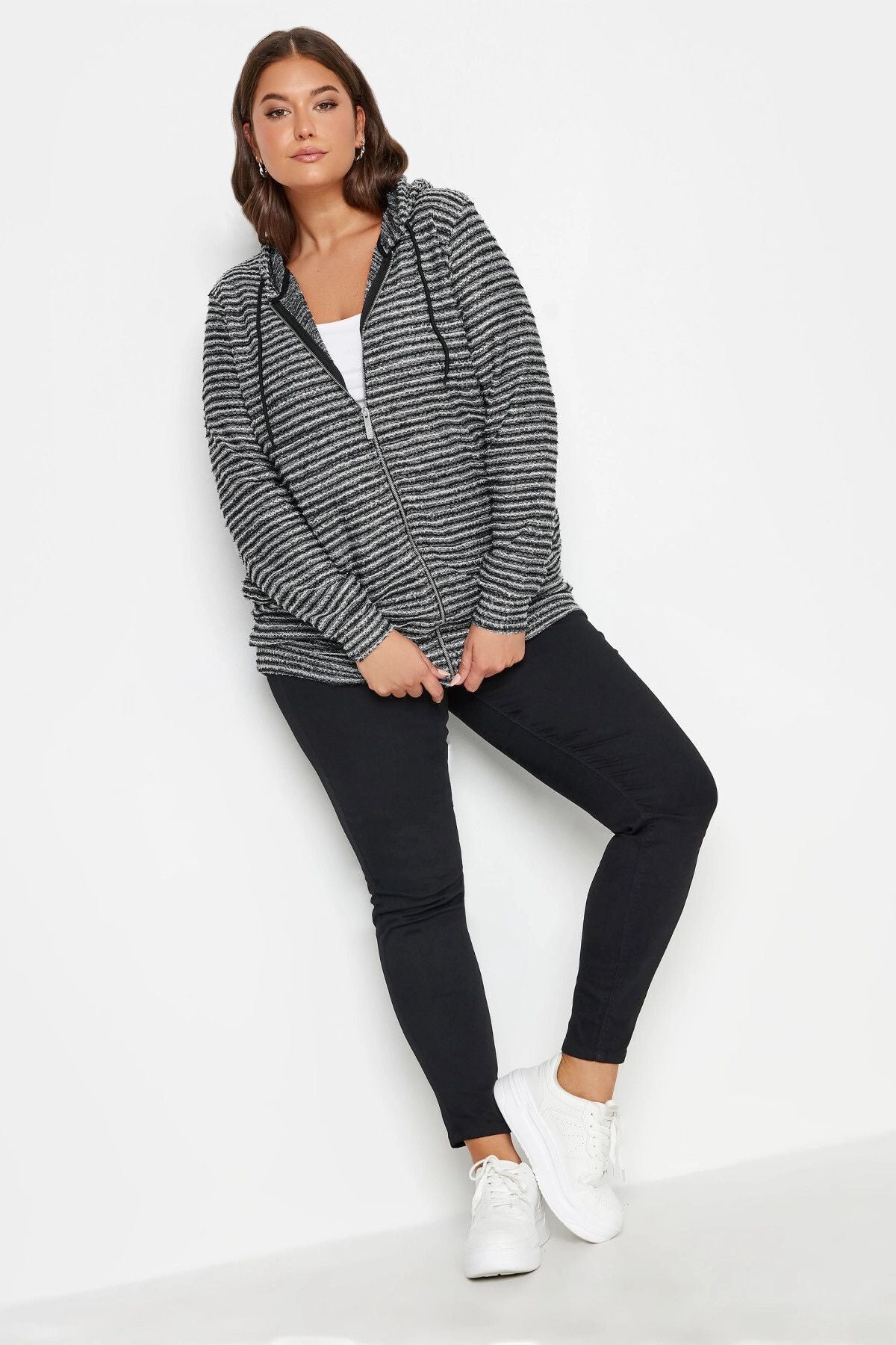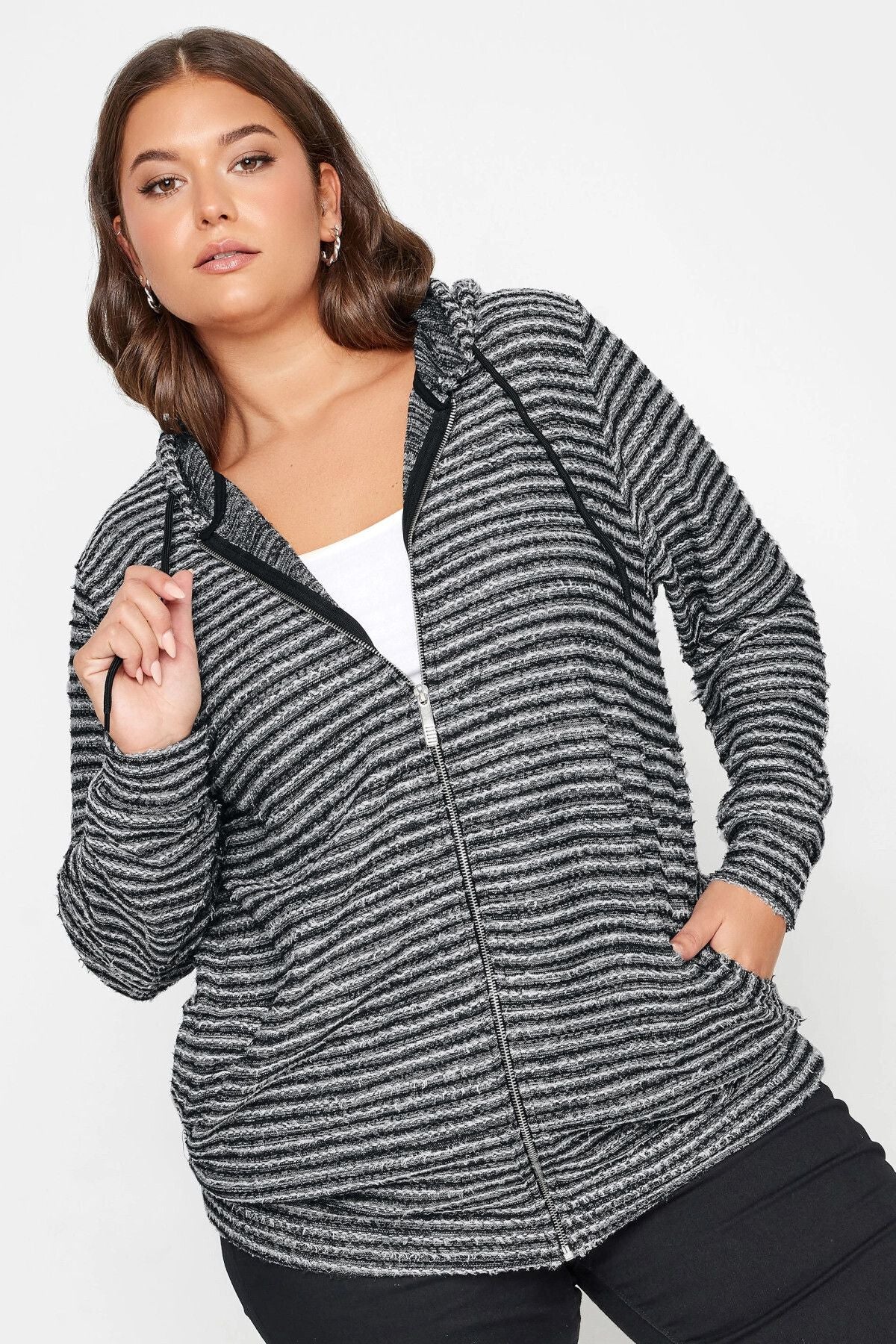 Büyük Beden Yumuşak Dokulu Kapüşonlu Fermuarlı Uzun Kollu Hırka 302594