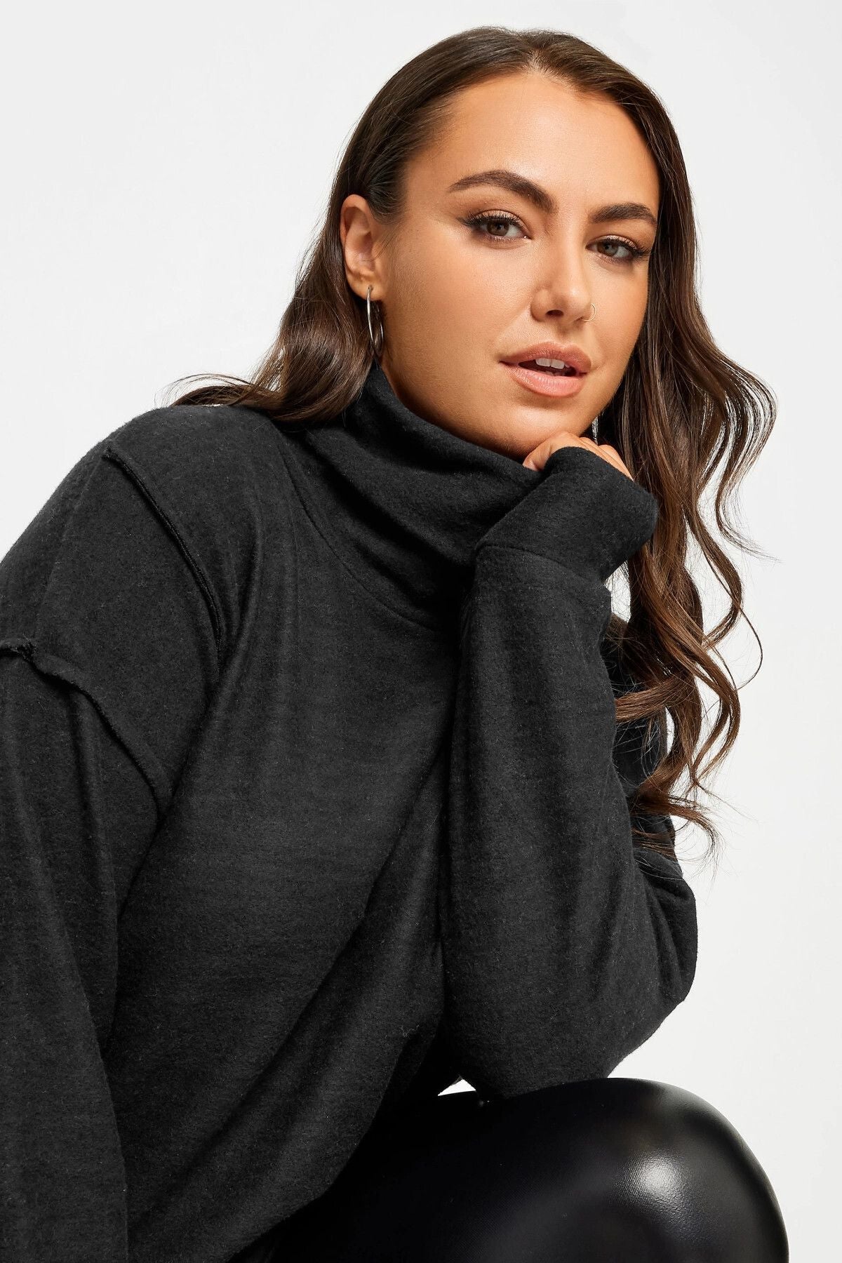 Büyük Beden Yumuşak Dokulu Uzun Kollu Balıkçı Yaka Kazak 302798