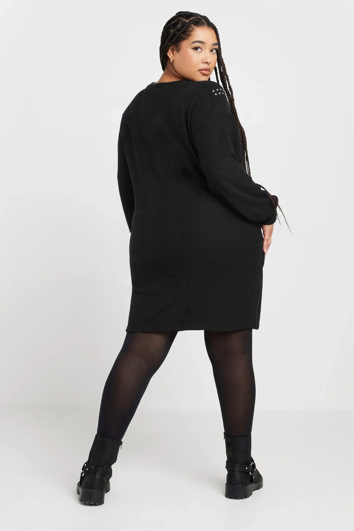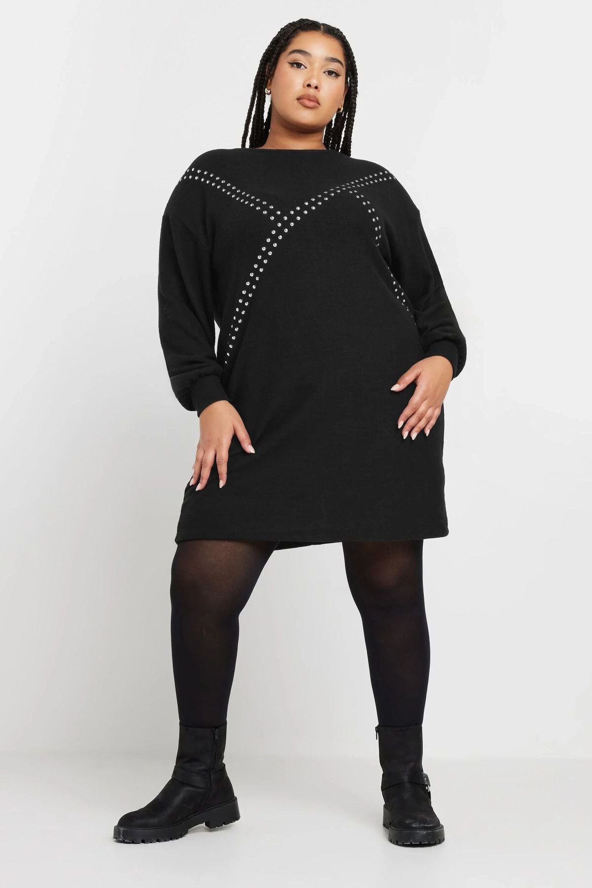 Büyük Beden Yumuşak Dokulu Uzun Kollu Bisiklet Yaka Mini Elbise 285038