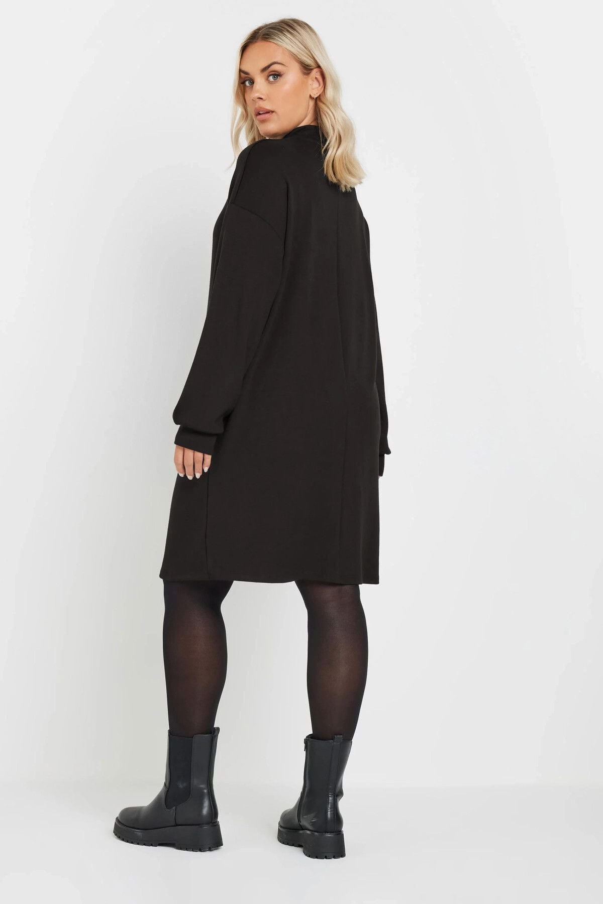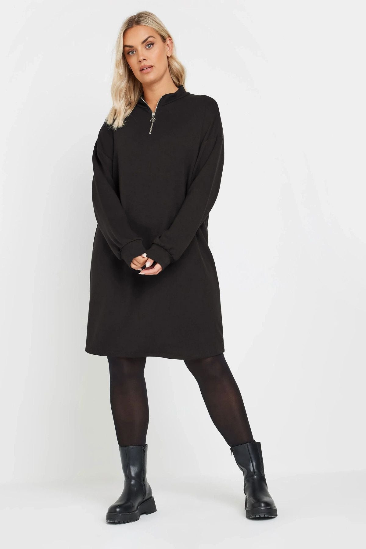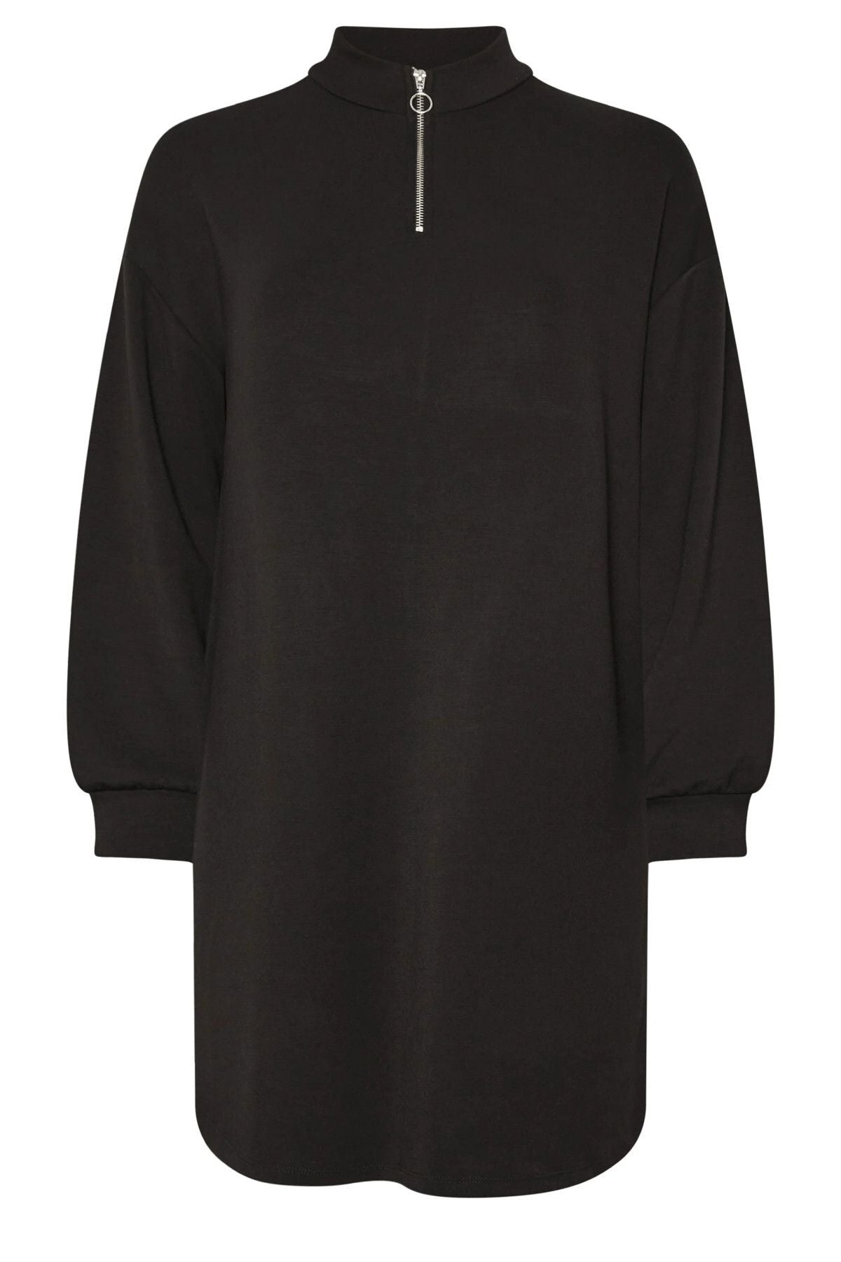 Büyük Beden Yumuşak Dokulu Uzun Kollu Yakası Fermuarlı Kısa Elbise 303760