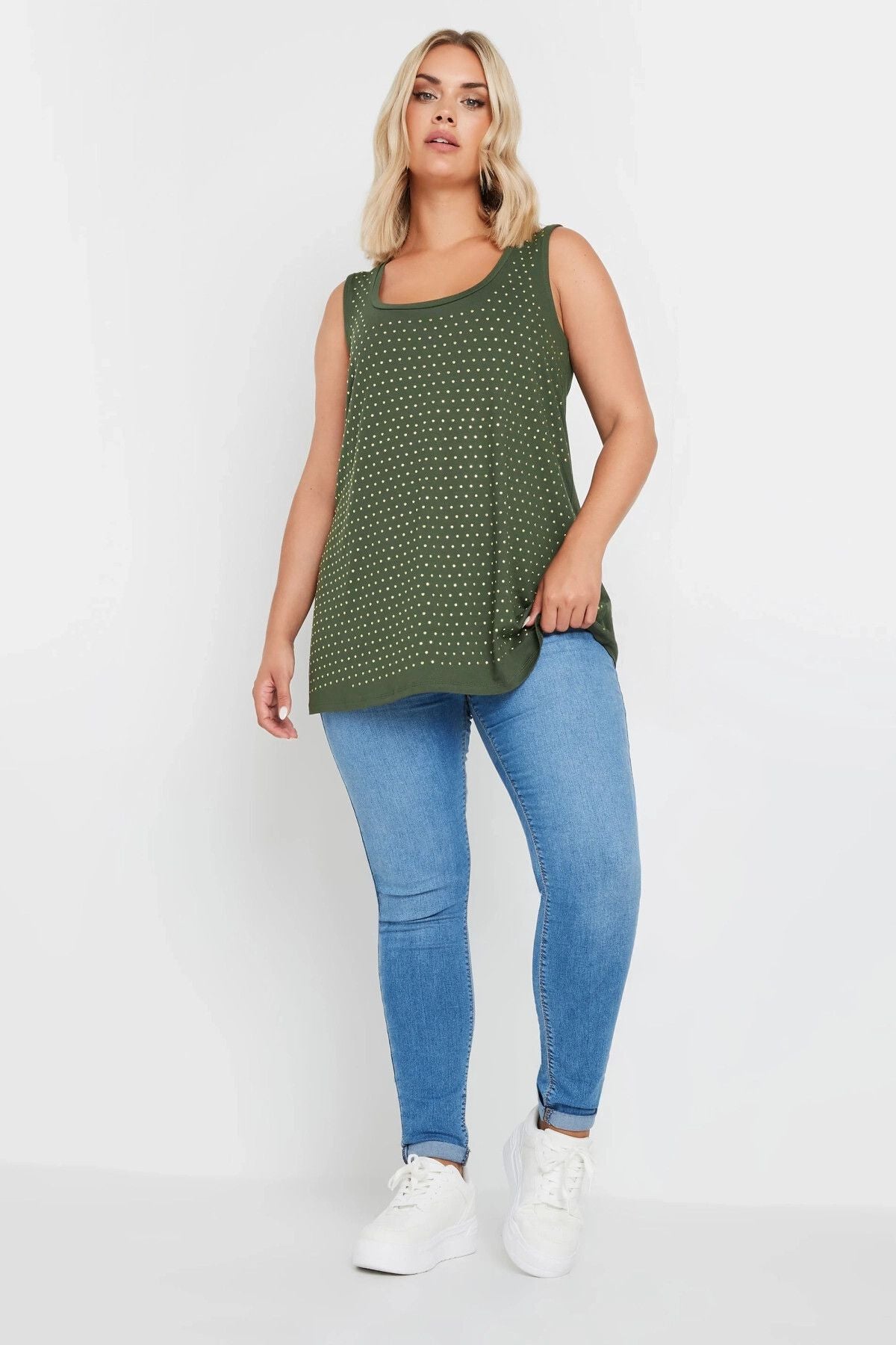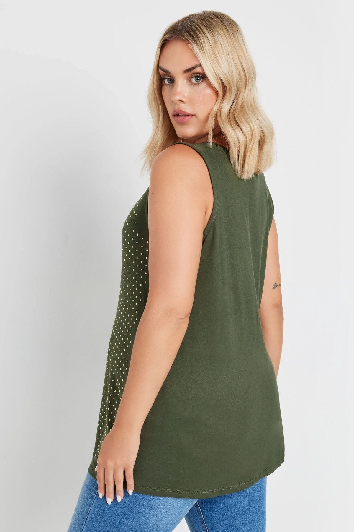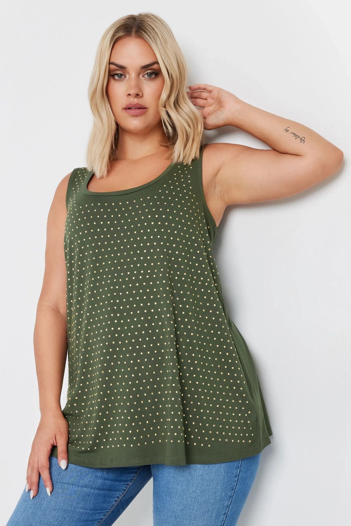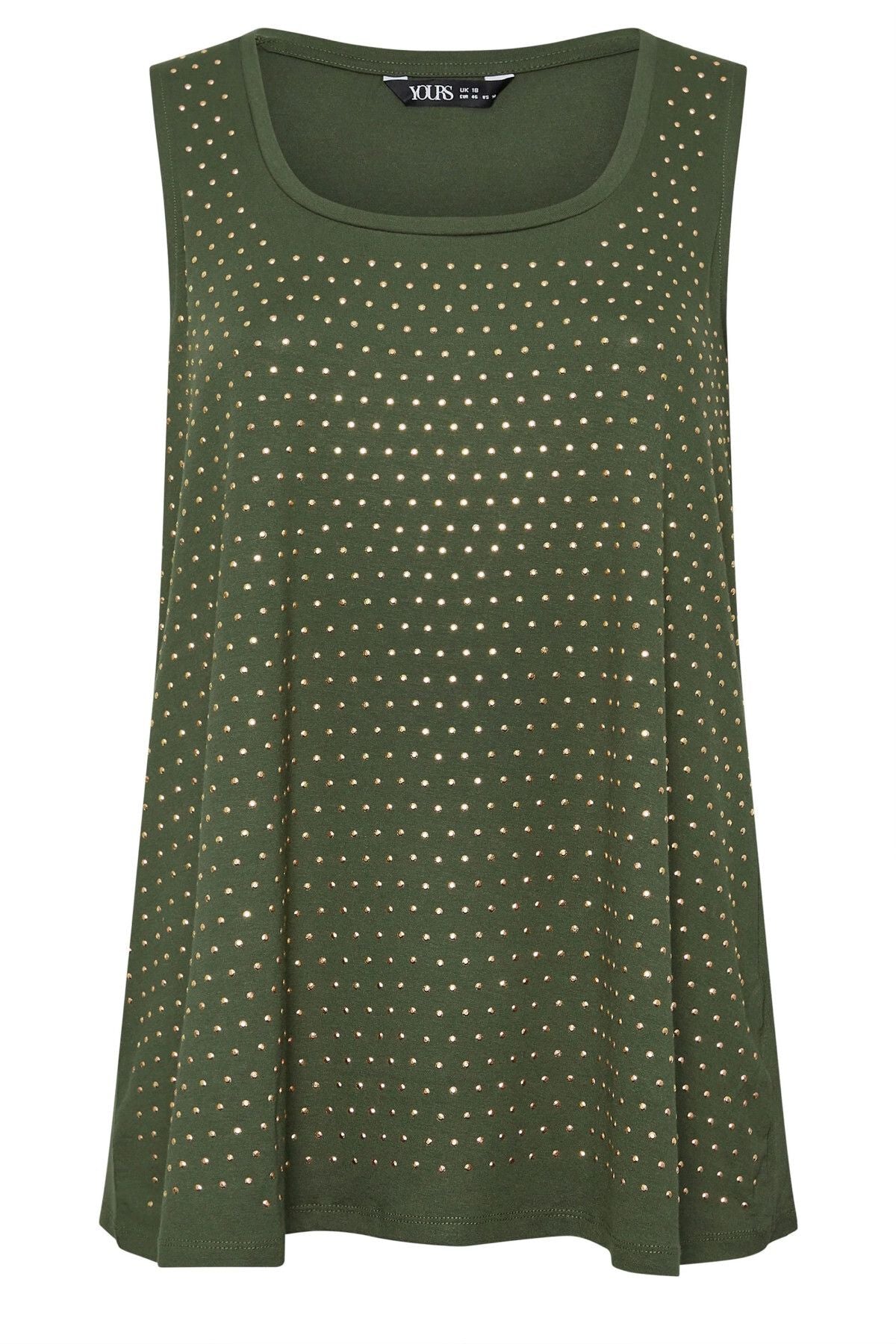 Büyük Beden Yuvarlak Yaka Sıfır Kol Zımba Detaylı Bluz 321832
