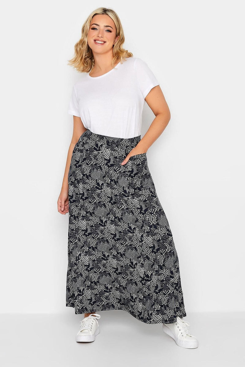 Büyük Beden Cep Detaylı Desenli Beli Lastikli Uzun Kesim Etek 160234