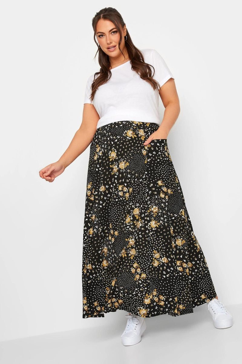Büyük Beden Cep Detaylı Desenli Beli Lastikli Uzun Kesim Etek 302288