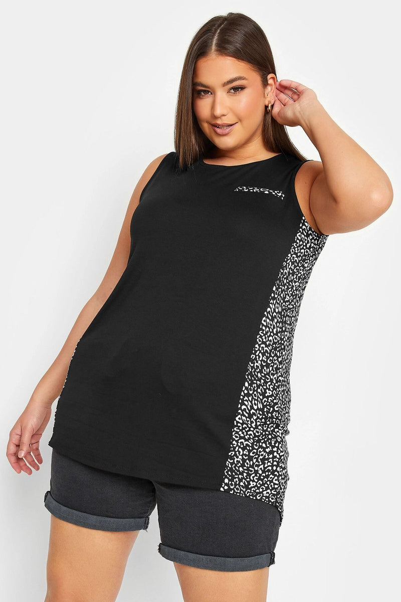 Büyük Beden Cep Detaylı Sırtı Leopar Desenli Sıfır Kol Bisiklet Yaka Bluz 302257