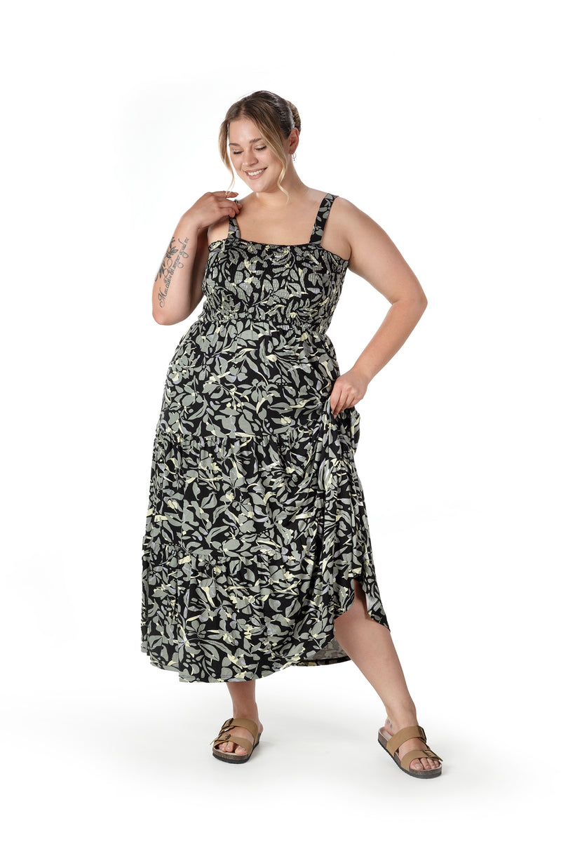 Büyük Beden Çiçek Desenli Kalın Askılı Beli Lastikli Elbise T-81