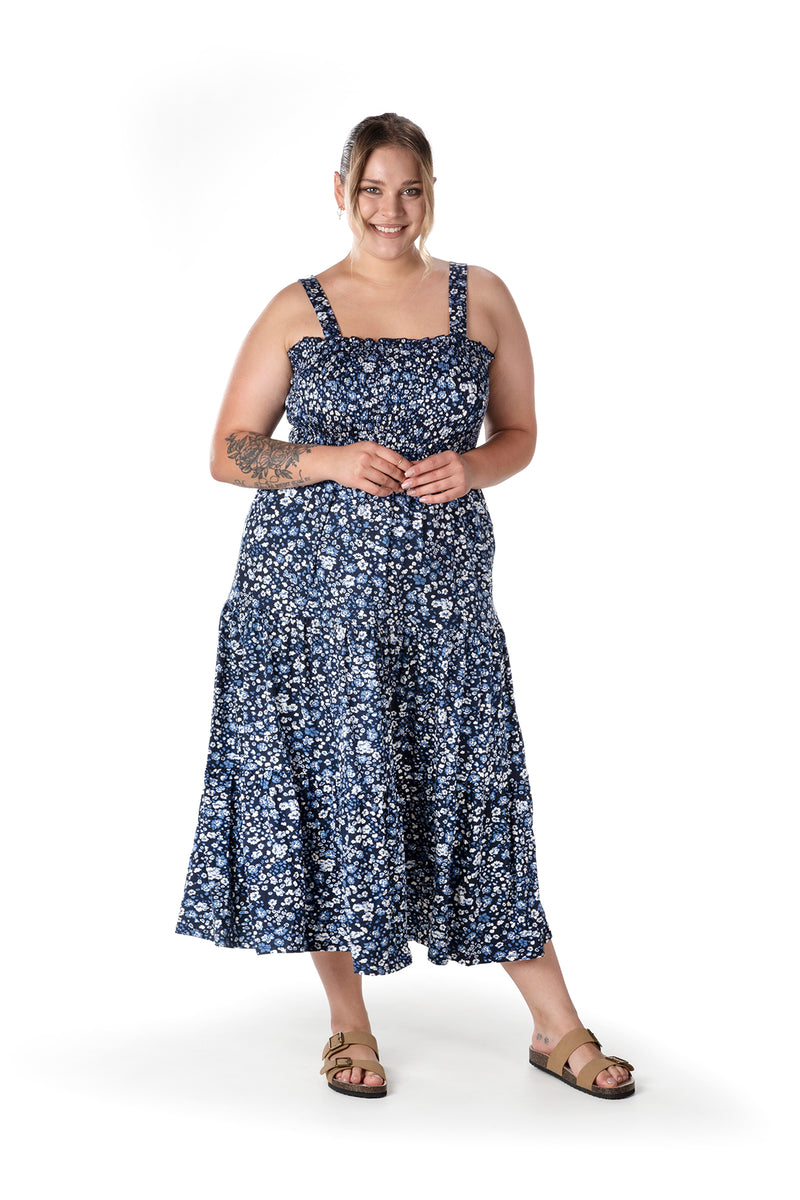 Büyük Beden Çiçek Desenli Kalın Askılı Beli Lastikli Elbise T-84