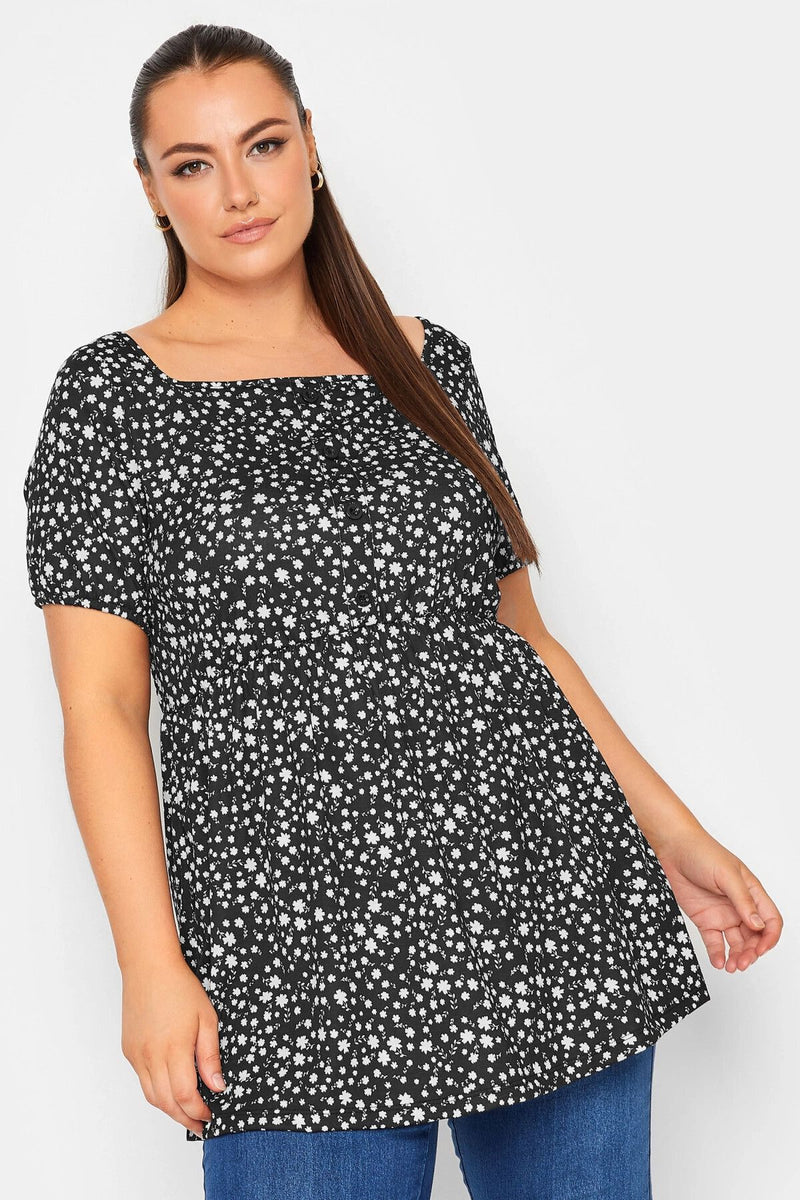 Büyük Beden Düğme Detaylı Kare Yaka Desenli Esnek Bluz 215849
