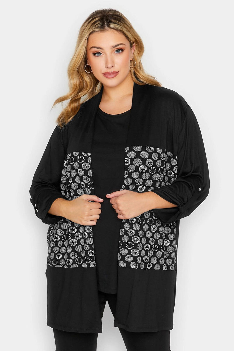 Büyük Beden Düğmesiz Desenli Uzun Kol Düğme Detaylı Hırka 301317