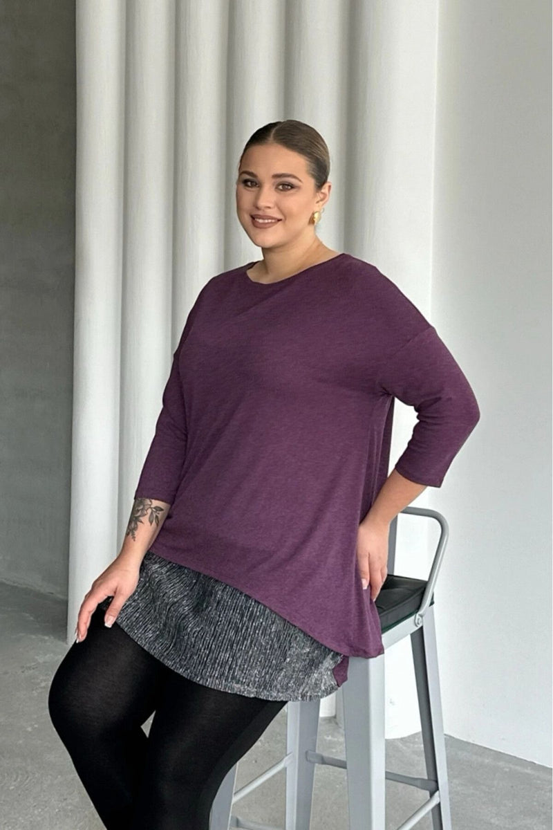 Büyük Beden Eteği Tül Detaylı Uzun Kollu İnce Bluz 84-106