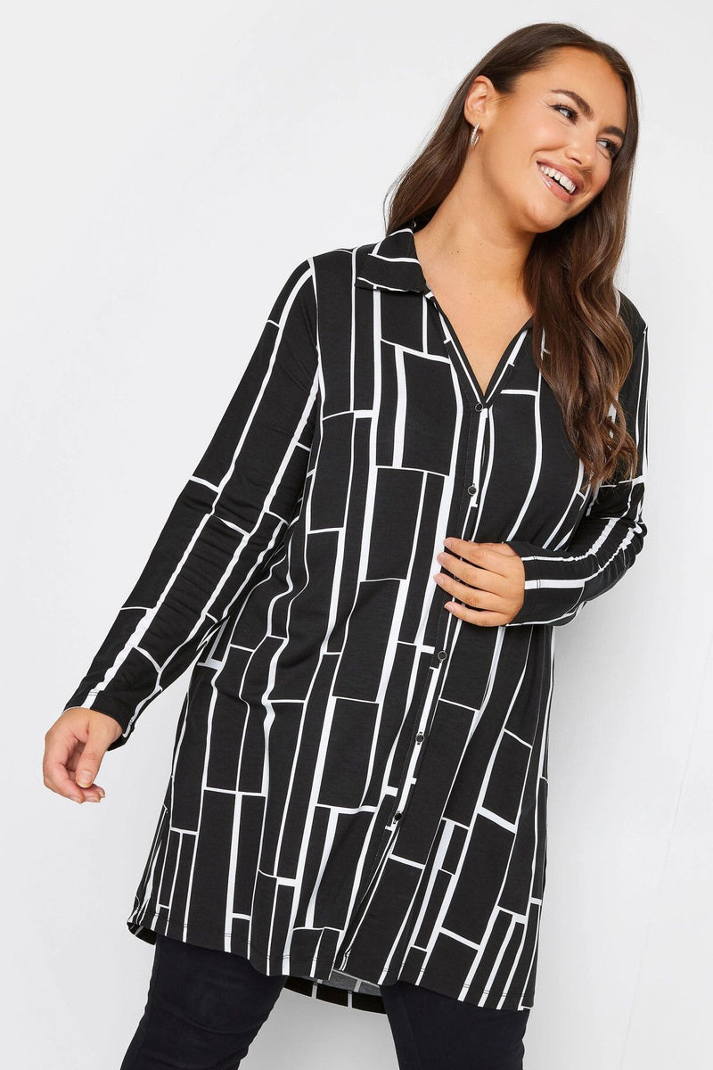 Büyük Beden Geometrik Desenli Uzun Kesim Uzun Kollu Gömlek 321234