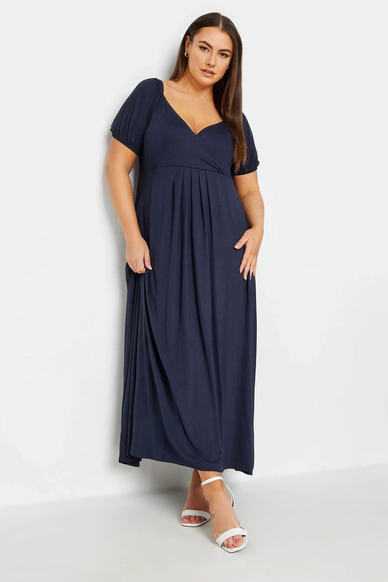 Büyük Beden Göğüs Dekolteki V Yaka Beli Lastikli Maxi Elbise 302970