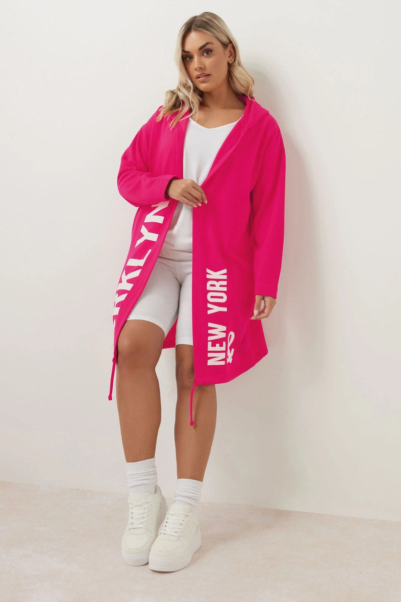 Büyük Beden Kapüşonlu Uzun Kollu Yazı Baskılı Cepsiz Hırka 303983