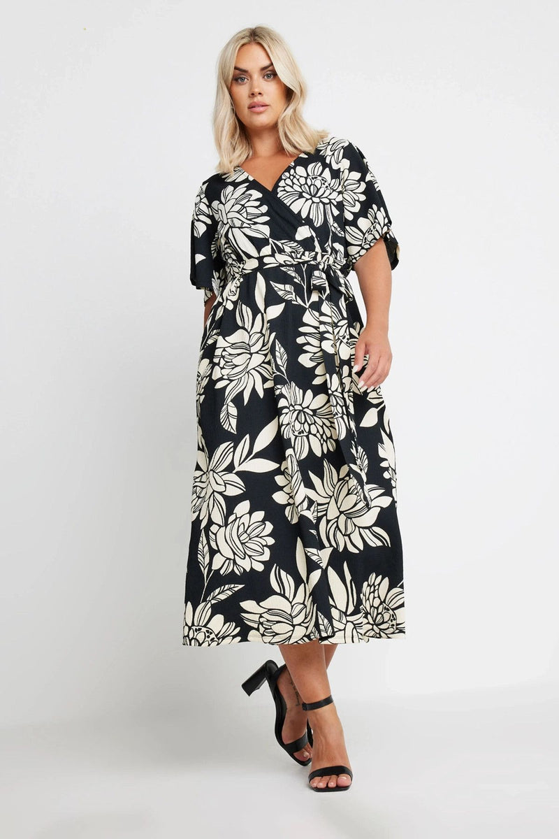 Büyük Beden Kısa Kollu V Yaka Kuşaklı Anvelop Elbise 137987