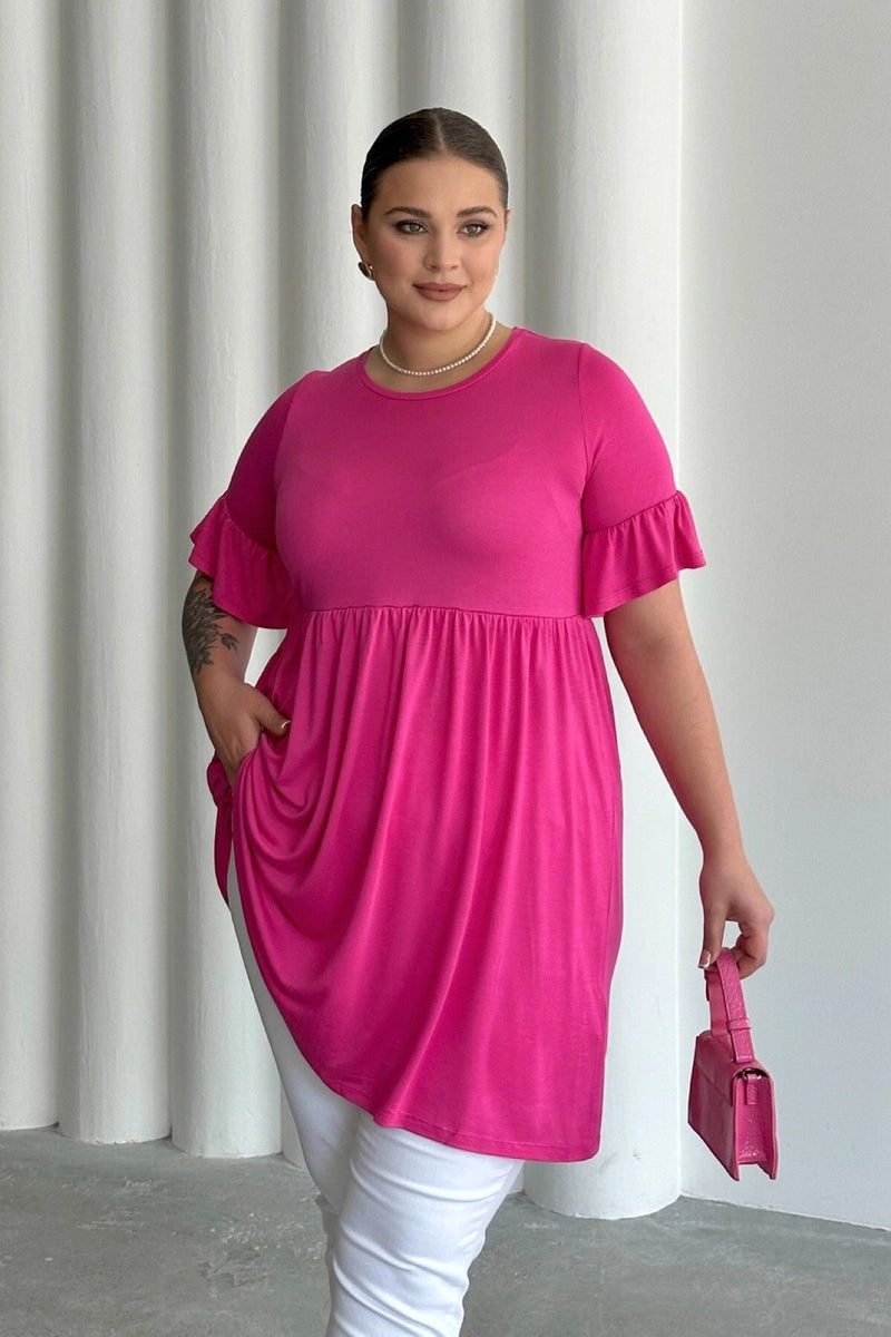 Büyük Beden Kol Detaylı Beli Lastikli Pileli Tunik T-shirt T41