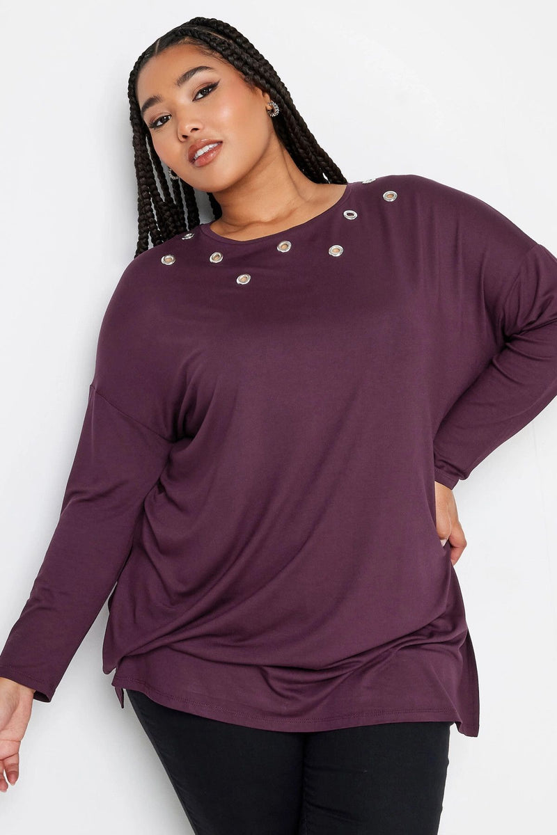 Büyük Beden Kuşgözü Detaylı Bisiklet Yaka Uzun Kollu Oversize Bluz 321291