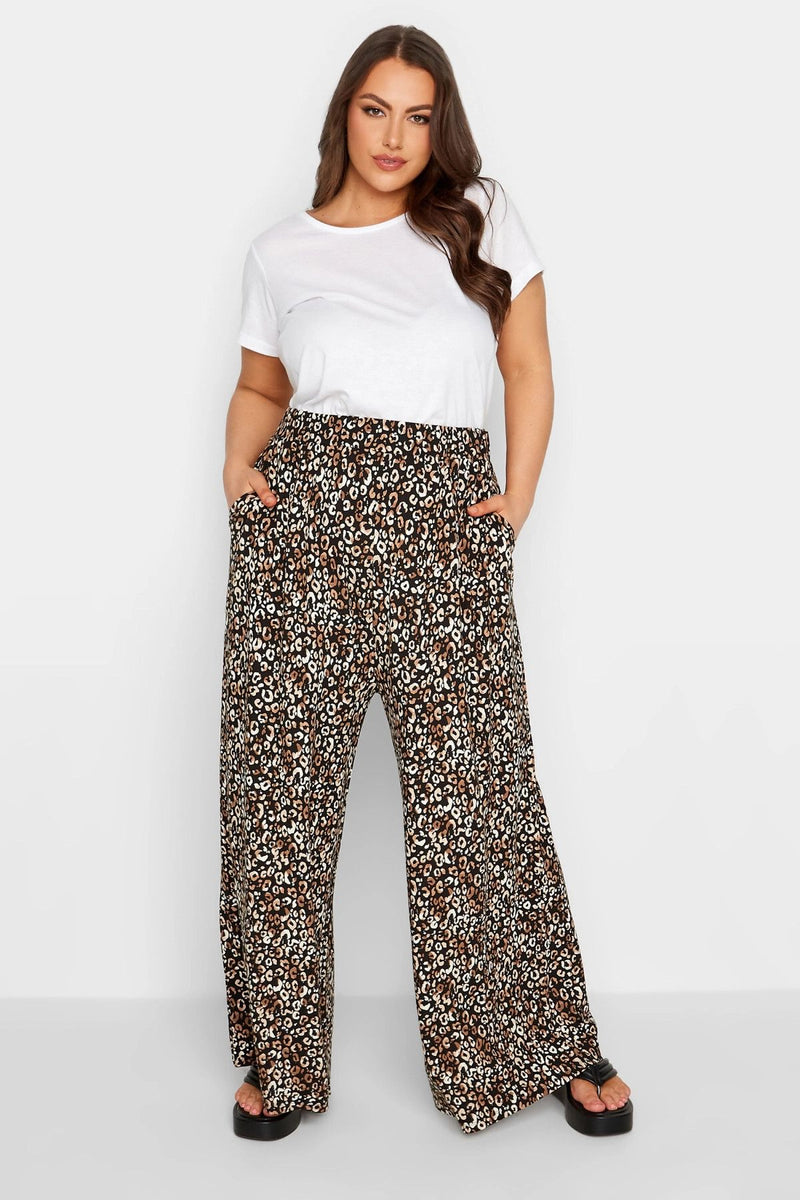 Büyük Beden Leopar Desenli İspanyol Paça Cepli Likralı Pantolon 143298