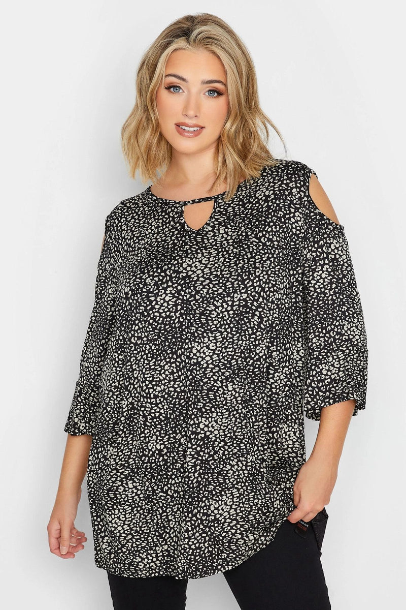 Büyük Beden Omuz ve Yaka Detaylı Desenli Fakir Kol Bluz 302487