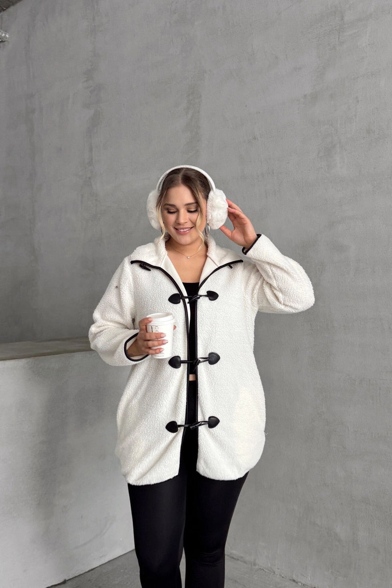 Büyük Beden Önü Kapamalı Cepli Uzun Kollu Peluş Mont 301816