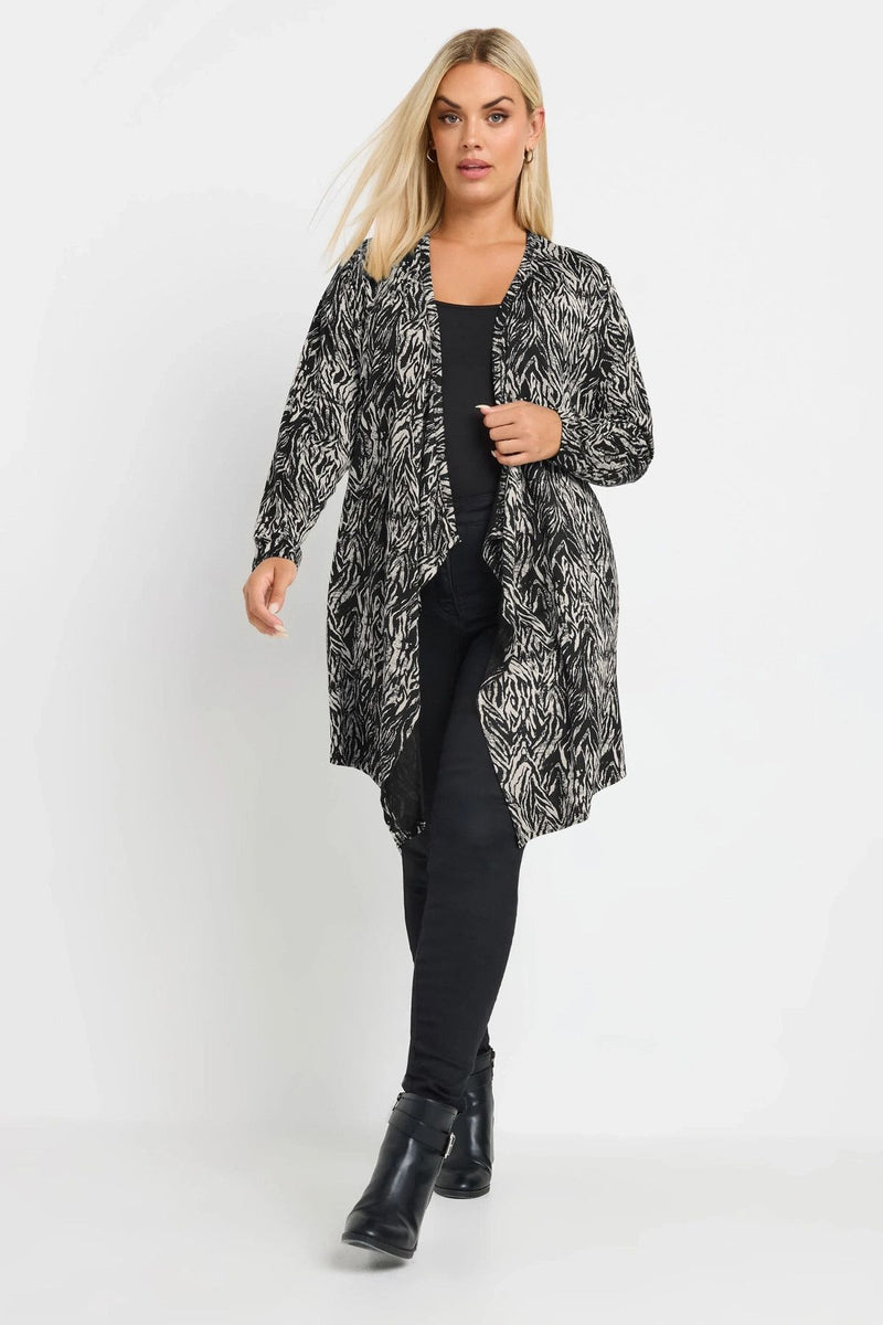 Büyük Beden Önü Kapamasız Uzun Kollu Asimetrik Kesim İnce Hırka 303693