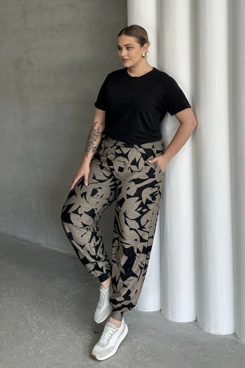 Büyük Beden Paçası Lastikli Parlak Baskılı Cepli Pantolon 302697
