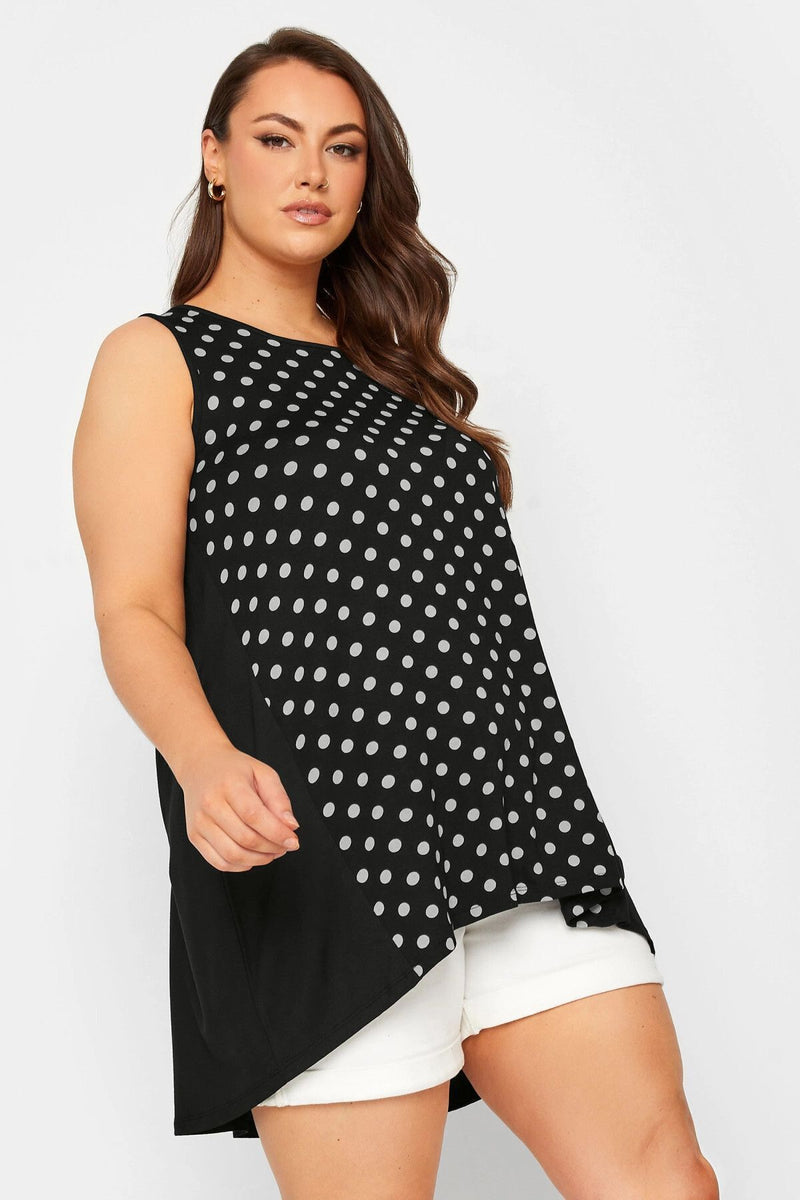 Büyük Beden Sıfır Kol Bisiklet Yaka Puantiye Desenli Bluz 302251