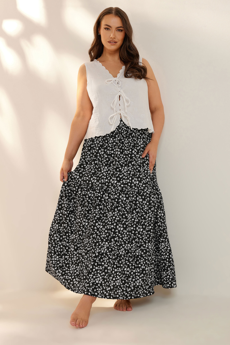 Büyük Beden Uzun Kesim Cepsiz Beli Lastikli Desenli Etek 160320
