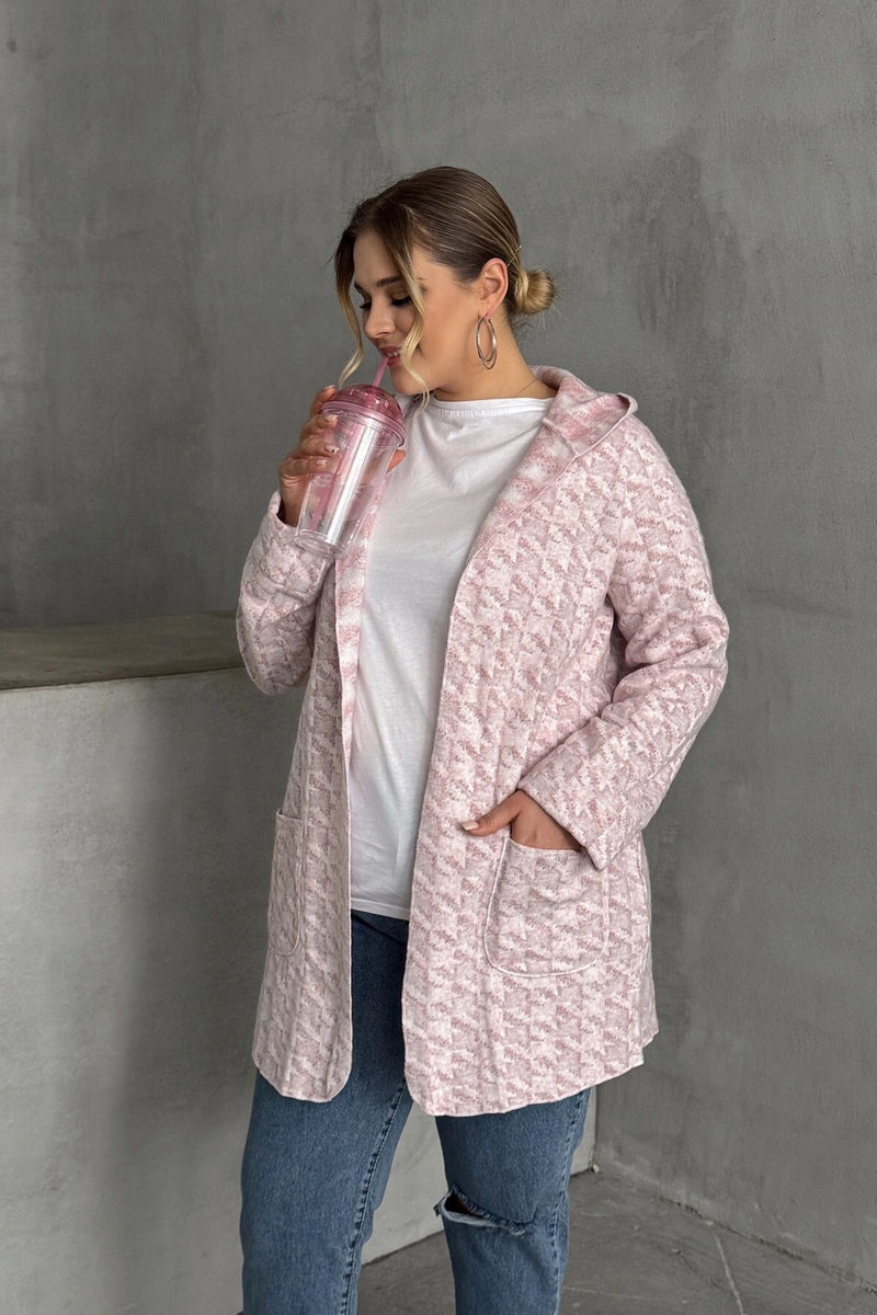 • Büyük Beden Uzun Kollu Kapüşonlu Cepli Önü Kapamasız İnce Hırka 301794